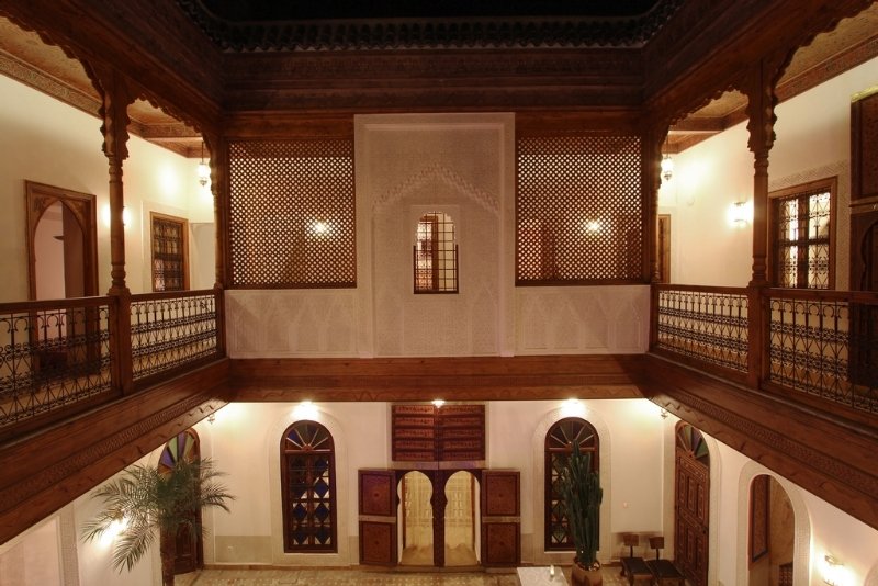 Completamente renovado en febrero de 2012, su arquitectura y la decoración de la decoración de varios palacios y casas tradicionales en Marrakech. Dos fachadas del patio, cara a cara, están revestidas con madera y celosías talladas en yeso, las otras dos estructuras con columnas de madera y arcos. Los techos de los corredores, puertas y ventanas de las habitaciones son de madera pintada (zouac) con diseño arabesco, planteadas desde el palacio de La Bahía. Una piscina inspirada en la Medersa Ben Youssef, close bhou (salón marroquí), proporciona frescura cristalina. En el patio, se abre una suite con cama con dosel y una sala de estar abierta con biblioteca y sillas, que ofrece un espacio de lectura y privacidad, y finalmente salón con aire acondicionado, con sofás marroquíes, proporcionando un espacio de reunión e intercambio entre amigos.