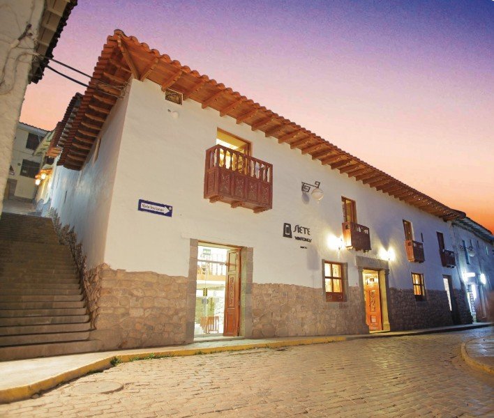 Está ubicado a dos cuadras de la Plaza de Armas de la ciudad de Cusco y también a dos cuadras de la Plaza de San Blas que es una de las zonas más tradicionales y típicas del Cusco. Gracias a su inmejorable ubicación, los atractivos turísticos más emblemáticos de la ciudad, están a pocos minutos del hotel. A 15minutos de distancia del aeropuerto Velasco Astete de Cusco.||Brinda a sus huéspedes una serie de servicios y comodidades como son: desayunador, café bar, internet gratuito, caja de seguridad, servicio de lavandería, custodia de equipaje, asistencia médica (previo pago), asesoría e información turística, Además, en el restaurante se brinda una variedad de comidas típicas e internacionales preparadas con los más frescos insumos de la zona.||Las habitaciones tienen ingreso de luz natural y están conectadas a través de pasadizos y balcones. Cuenta con Televisión por cable, sistemas de calefacción, sistema de agua fría y caliente, minibar, caja de seguridad, conexión WIFI a internet. La Suite superior se encuentra en el segundo nivel de la parte colonial del hotel, cuenta con un amplio ambiente, cama KingSize, techo colonial y un balcón que permite una vista completa de la calle Siete Ventanas y calle Ruinasque.