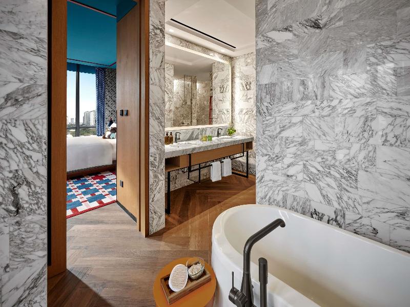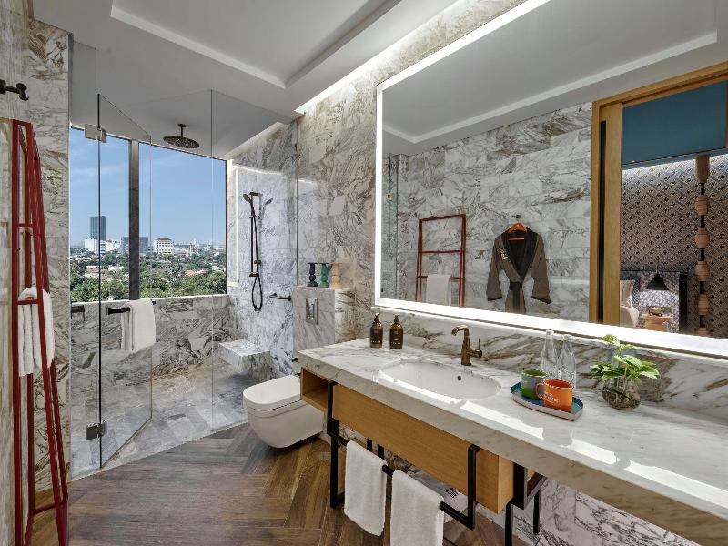 Elevándose sobre el prestigioso complejo SCBD District8 de Yakarta, el 25Hours The Oddbird Jakarta ofrece la comodidad del hogar con vistas espectaculares del horizonte de Yakarta y del exclusivo barrio de Senopati, centro de la célebre vida nocturna y gastronómica. El establecimiento ofrece 135 apartamentos con servicios, que incluyen desde estudios hasta apartamentos de 3 dormitorios. Los huéspedes también pueden disfrutar del gimnasio y de la piscina infinita. Está a solo unos minutos a pie de la estación de MRT, el complejo deportivo GBK y el distrito financiero.