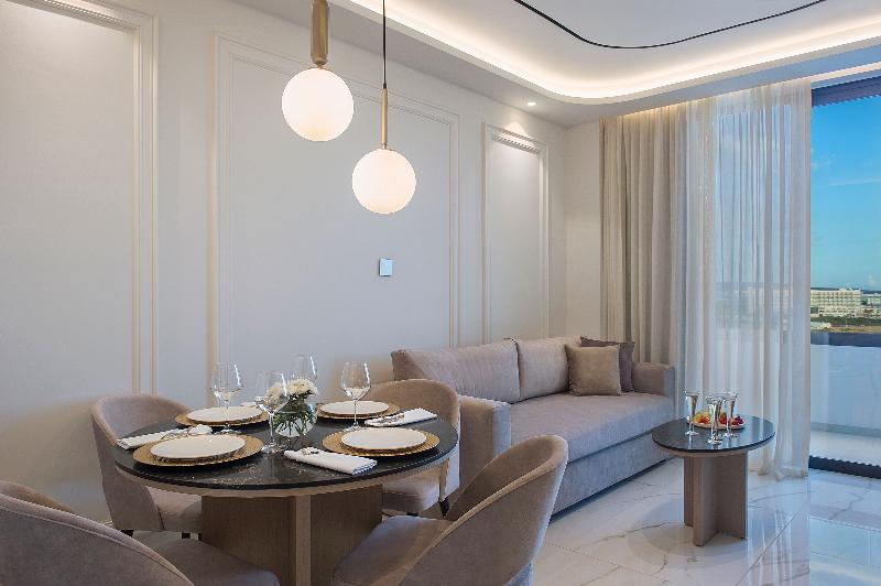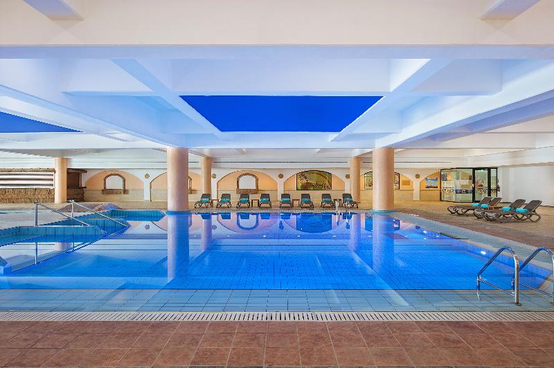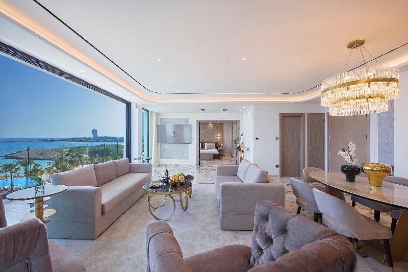 Con vistas al eterno azul del mar Mediterráneo, este excelente hotel está perfectamente situado en la preciosa playa de arena de Nissi Bay, a solo 3 km del centro del complejo vacacional de Ayia Napa. Atracciones como el monasterio y la plaza de Ayia Napa, un parque acuático o las cuevas marinas se encuentran a poca distancia. El aeropuerto internacional de Larnaca está a unos 45 km. El hotel ofrece a sus huéspedes una zona principal ideal para familias, así como el ala Deluxe, solo para adultos, con lujosas habitaciones e instalaciones. Te encantará el fantástico jardín y el paisaje de piscinas, con piscina de forma libre, río lento, toboganes, así como piscina de entrenamiento y recreativa. Para los más pequeños, hay una piscina infantil y un parque, mientras que los padres pueden disfrutar del relax total en el Olympic Health Centre, que incluye gimnasio, spa, masajes y tratamientos de belleza. Todas las habitaciones tienen aire acondicionado y están equipadas con TV de pantalla plana, minibar, baño privado con bañera o ducha y artículos de tocador. Este alojamiento es una opción realmente maravillosa para unas vacaciones de playa bajo el sol del Mediterráneo.