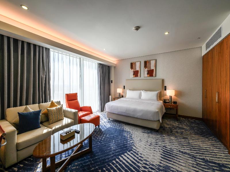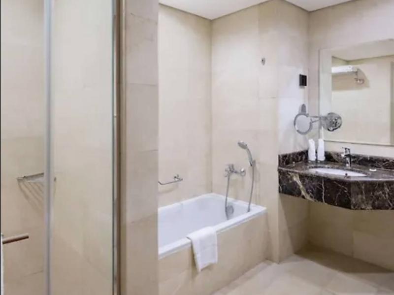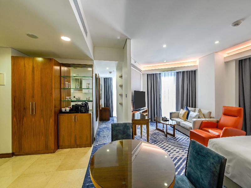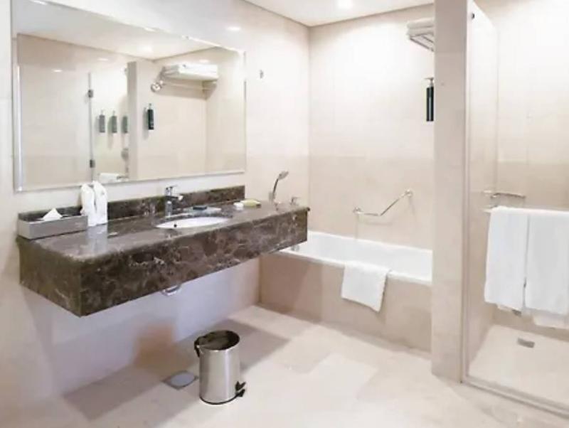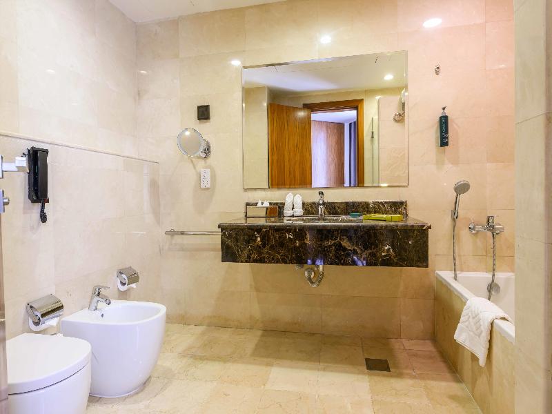Ubicado en Jeddah, Al Andalus Mall Hotel está a pocos pasos de Alandalus Mall y a 4 minutos en coche de King Abdulaziz University. Este hotel de primer nivel se encuentra a 3, 6 km de Al Salaam Mall y a 8, 8 km de Thalia Street. No te pierdas las numerosas opciones recreativas, que incluyen un gimnasio, una piscina al aire libre y un baño turco. Este hotel también ofrece acceso inalámbrico a internet de cortesía, servicios de conserjería y servicios para bodas. Siéntete como en casa en una de las 164 habitaciones, que cuentan con cocinas con refrigeradores/congeladores grandes y microondas. Televisores de pantalla plana de 55 pulgadas con programación por satélite te ofrecen entretenimiento, mientras que el acceso inalámbrico a internet de cortesía te mantiene conectado. Los baños con bañeras y duchas independientes cuentan con bañeras profundas y artículos de tocador de cortesía. Las comodidades incluyen cajas fuertes y cafeteras/teteras, y se ofrece servicio de limpieza todos los días. Disfruta de una comida en The Hub o de refrigerios en la cafetería. El hotel también ofrece servicio a la habitación (en horario limitado). Socializa con otros huéspedes en la recepción de cortesía, que se celebra a diario. Calma tu sed con tu bebida favorita en el bar/salón. Se sirve desayuno tipo bufé todos los días con cargo adicional. Las comodidades destacadas incluyen un centro de negocios, servicios de tintorería/lavandería y recepción disponible las 24 horas. Hay estacionamiento sin valet parking gratuito en las instalaciones. Las distancias se muestran con una precisión de 0, 1 millas y kilómetros. Alandalus Mall: 0, 1 km- Al Salaam Mall: 1, 8 km