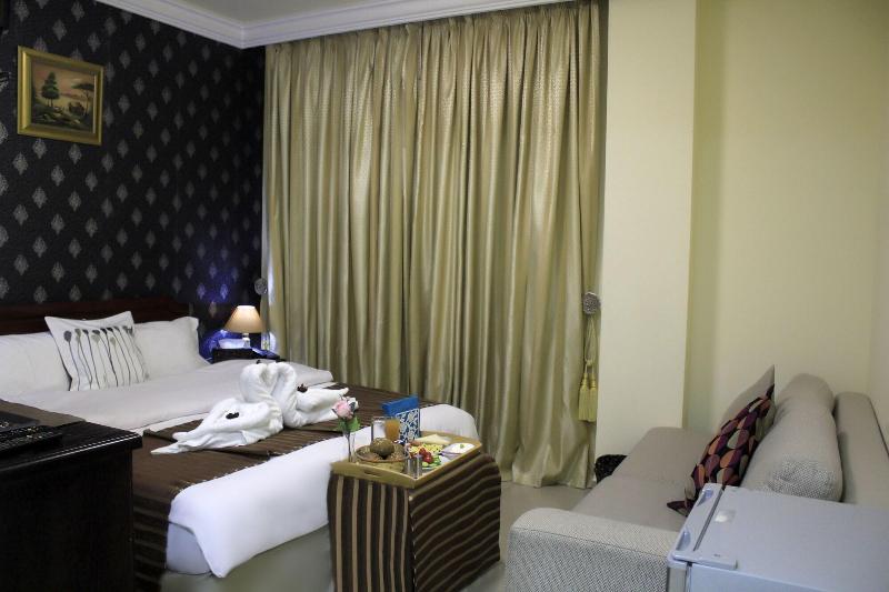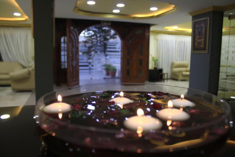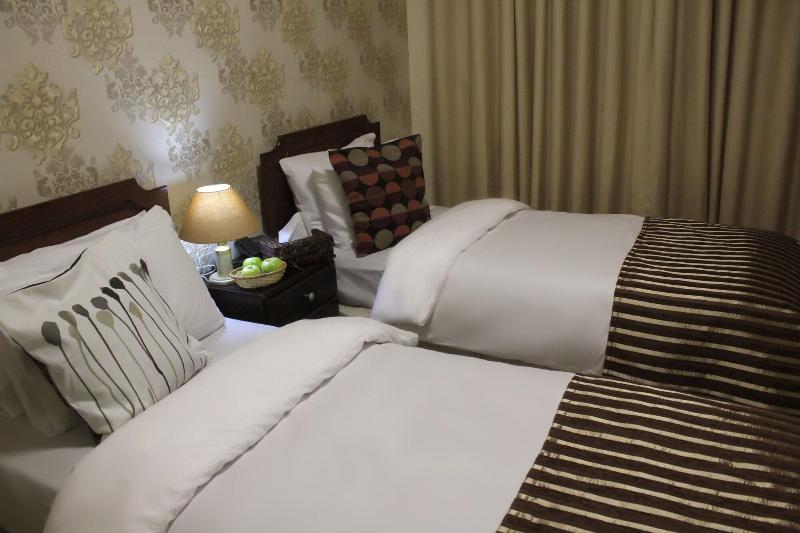 Alójate en el Alaqsa Palace Hotel Suites & Apartments en Amán y estarás a 2 minutos en coche de Amman Mall y a 8 minutos de la Ciudadela de Amán. Este hotel se encuentra a 11 km del Teatro Romano de Amán y a 1, 9 km del Hospital Ibn AlHaytham. Consiéntete con masajes en las instalaciones o disfruta de la vista desde la terraza y el jardín. Entre los servicios adicionales de este hotel se incluyen wifi gratis, servicios de conserjería y servicios para bodas. Tendrás a tu disposición un centro de negocios, periódicos gratuitos en el vestíbulo y servicio de tintorería/lavandería. Se ofrece servicio de transporte al aeropuerto (ida y vuelta) de pago (disponible las 24 horas) y aparcamiento gratuito. Compra algo de comer en la tienda de comestibles o quédate en el hotel y aprovecha el servicio de habitaciones (con horario limitado). Se ofrece un desayuno completo todos los días de 7:00 a 10:00 con un coste adicional. Siéntete como en casa en una de las 57 habitaciones con aire acondicionado, frigorífico y microondas. La televisión de pantalla plana con canales por satélite te ofrece entretenimiento, mientras que el acceso a internet wifi gratis te mantiene conectado. El baño privado con ducha está provisto de artículos de higiene personal gratuitos y secadores de pelo. Entre las comodidades, se incluyen teléfono, caja fuerte y periódicos gratuitos.