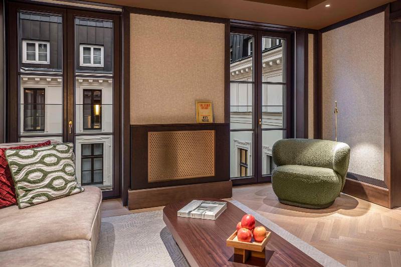 El Almanac Palais Vienna, un hotel boutique de lujo, se encuentra en un par de antiguos palacios que datan de 1871. Con vistas al Stadtpark, el primer espacio verde público de Viena, la propiedad está situada en la Ringstrasse, el bulevar más elegante de la ciudad. Lugares emblemáticos locales, como la Ópera Estatal de Viena y el Museo de Artes Aplicadas (MAK), se encuentran a poca distancia a pie. El galardonado diseñador Jaime Beriestain supervisó la restauración, transformando el histórico palacio en un hotel con 80 suites y 31 habitaciones, impregnado de la herencia vienesa. Los huéspedes pueden admirar una colección rotativa de arte de artistas emergentes. Un santuario de bienestar revestido de mármol de dos plantas cuenta con una piscina cubierta de 14 metros con aguas termales. Los ingredientes de origen local son los protagonistas del restaurante alpino con enfoque vegetal. El hotel requiere un depósito de 100, 00 € por habitación/noche al hacer el registro de entrada para cubrir posibles gastos adicionales.