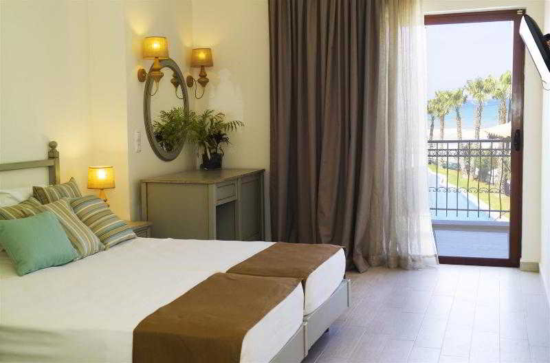 Este hotel cuenta con una magnífica y preciosa ubicación, en el corazón de Almirida y a primera línea de la extensa playa de arena. En las cercanías hay una gran cantidad de tiendas, comercios y lugares de ocio y de entretenimiento. Enfrente del hotel hay una parada de autobús. El aeropuerto de Chania se encuentra a 14 kilómetros.||Este hotel, que cuenta con una ubicación excelente, tiene 3 plantas en las que se reparten un total de 120 habitaciones, 4 de ellas elegantes suites y 28 estudios. Será muy bien recibido en el acogedor hall de entrada, que cuenta con una recepción abierta las 24 horas, una caja fuerte, un guardarropa, servicio de cambio de divisa y un ascensor. Asimismo, también tiene a su disposición servicio de alquiler de bicicletas y un sótano para guardarlas. El hotel le ofrece, además, una sala de juegos, una sala de televisión, una terminal de Internet y un comedor. En cuanto al aspecto gastronómico, podrá disfrutar de un acogedor bar y de un restaurante climatizado con zona para fumadores y no fumadores, así como con tronas para los más pequeños. Como prestaciones adicionales encontrará el servicio de lavandería y de atención médica. Podrá aparcar su vehículo en el exterior del hotel, donde hay plazas de aparcamiento.||Todas las habitaciones han sido decoradas y equipadas de forma moderna y confortable. Disponen de un cuarto de baño propio con ducha, bañera y secador de pelo. Además, cuentan con teléfono de línea directa, televisión vía satélite o por cable, radio y caja fuerte de alquiler. También están equipadas con una cómoda cama doble, aire acondicionado, calefacción central, cama doble, plancha, tabla de planchar y balcón. Los estudios disponen, además, de una cocina pequeña.