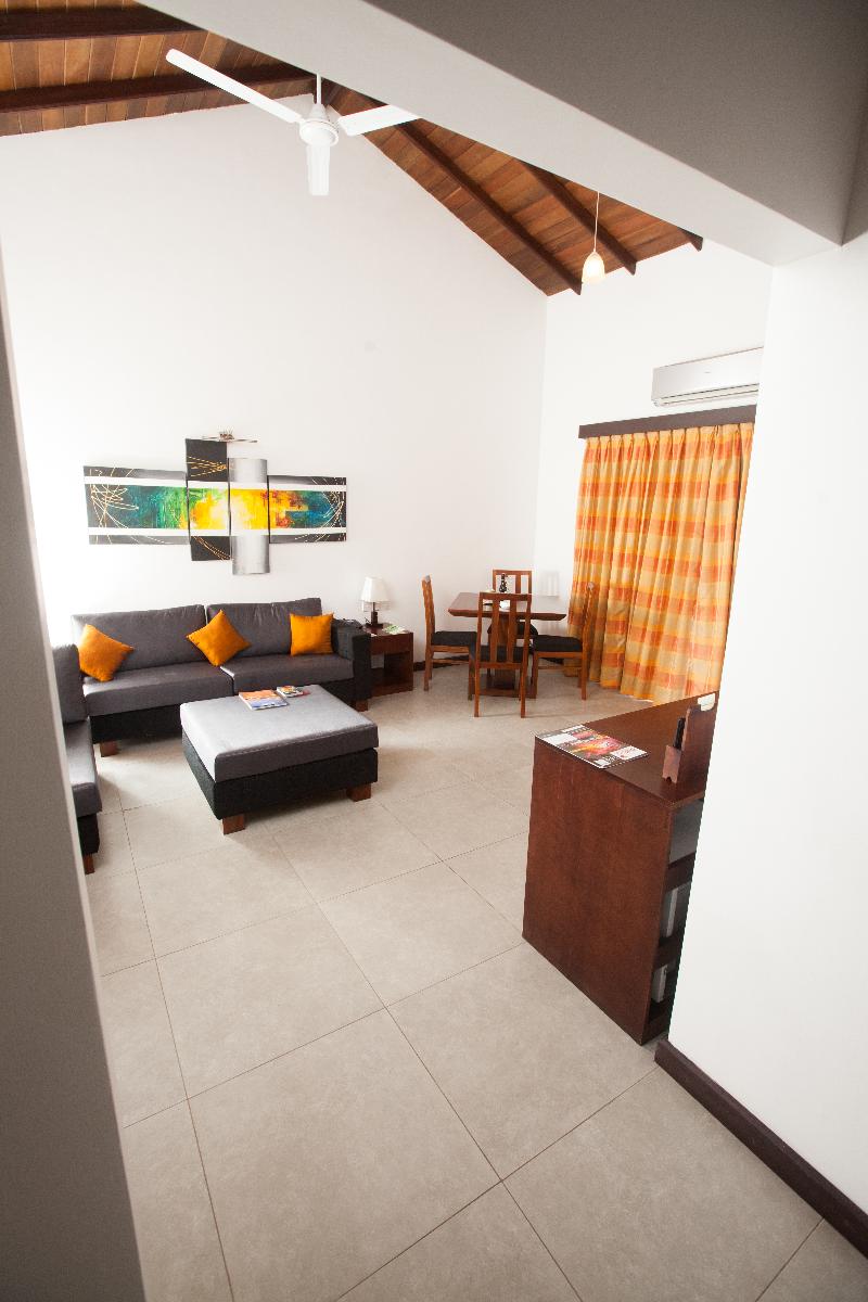 Situado junto a una impresionante playa de arena en forma de media luna, bordeada de exuberantes palmeras y un frondoso bosque en la Bahía de Passikudah, este hotel ofrece comodidades modernas para unas vacaciones sin preocupaciones en Sri Lanka. Los amantes de la naturaleza disfrutarán del arrecife de coral de la bahía, y a solo media hora se encuentra la Laguna de Kallady, donde se pueden observar los famosos 'peces cantores' entre abril y septiembre. Además, las espectaculares ruinas antiguas y el sitio declarado Patrimonio de la Humanidad por la UNESCO de Polonnaruwa se encuentran a solo una hora de distancia. El hotel cuenta con 97 habitaciones con una decoración luminosa, así como una pintoresca piscina al aire libre rodeada de una terraza con tumbonas y sombrillas, además de una piscina infantil para que los más pequeños chapoteen y jueguen. Puedes disfrutar de deliciosos mariscos en el restaurante del hotel o en el pub de estilo mediterráneo. Ideal para una escapada romántica o unas vacaciones en familia, este hotel te ofrece unas relajantes vacaciones en la playa en Sri Lanka.