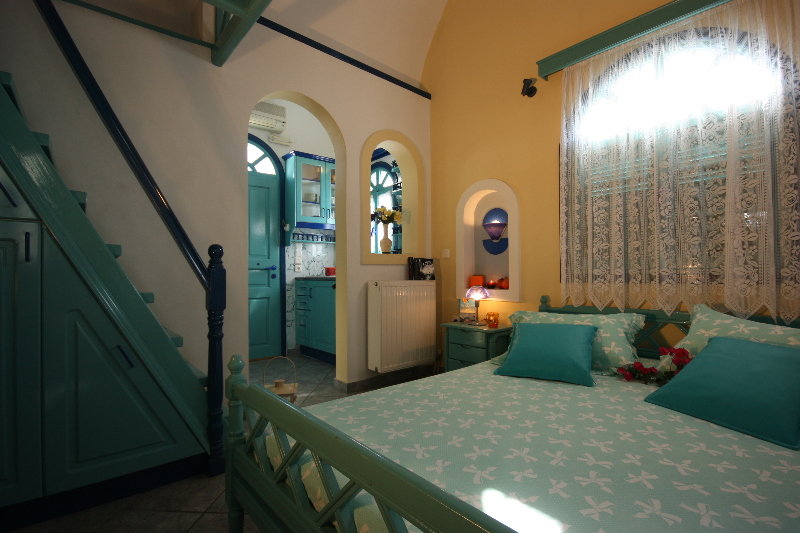 Encantador alojamiento de vacaciones en la isla de Santorini diseñado para familias, parejas o viajeros individuales en busca de un lugar asequible para quedarse en las islas Cícladas.Ofrece un gran alojamiento vacacional ocupando un tradicional edificio encalado de 3 pisos, rodeado de exuberantes buganvillas y otras plantas mediterráneas típicas.