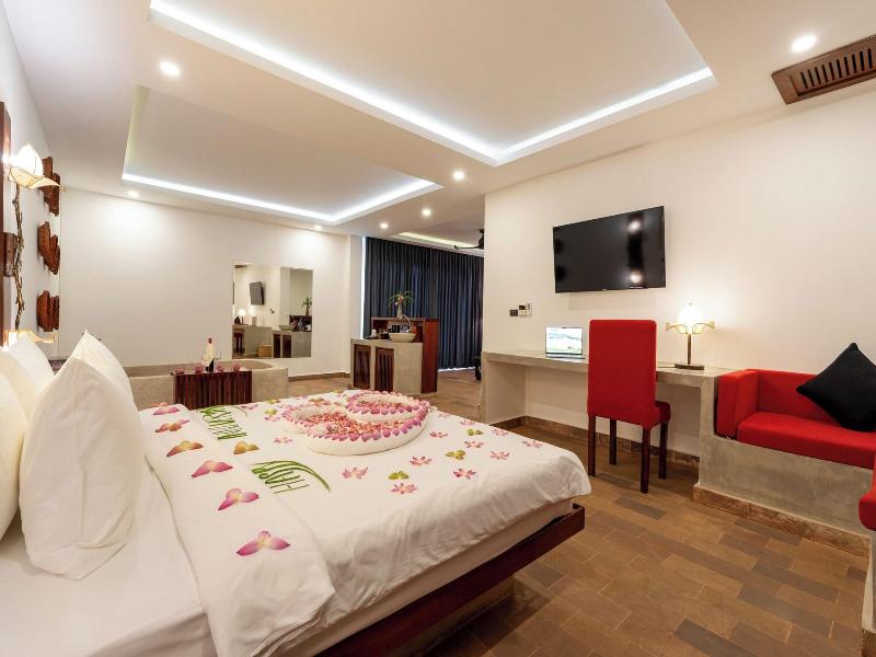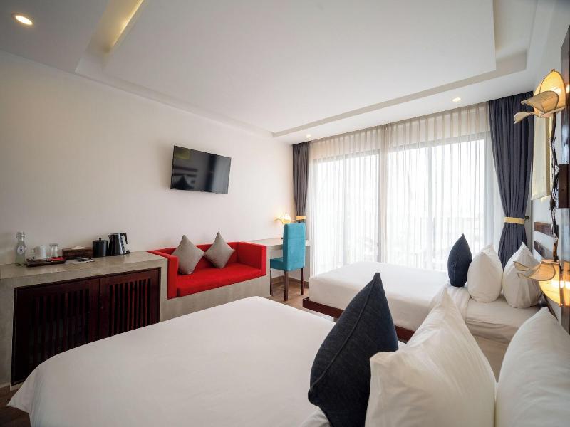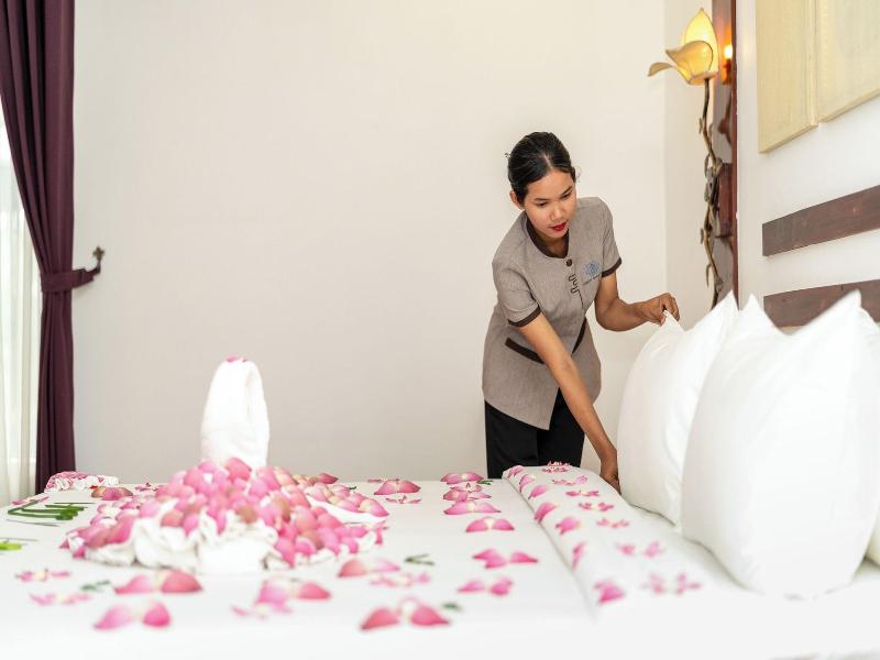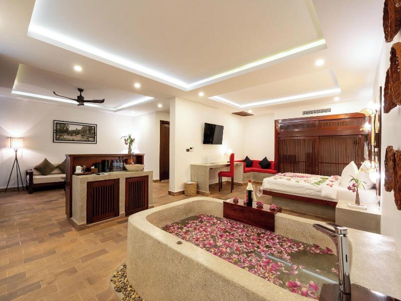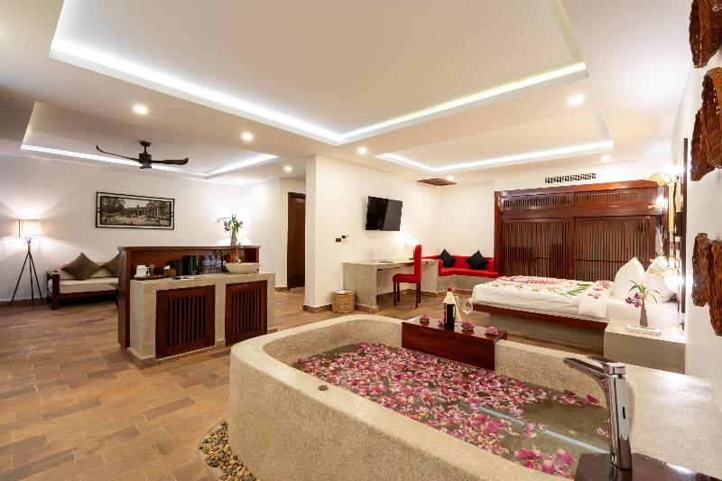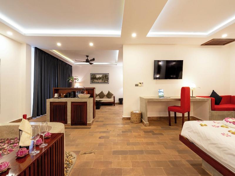 Ubicado en Phumi Ta Phul, a 3 km de King's Road Angkor, el Angkor Breeze Hotel & Spa ofrece alojamiento con jardín, aparcamiento privado gratuito, terraza y restaurante. Cada alojamiento de este hotel de 4 estrellas tiene vistas a la ciudad, y los huéspedes pueden disfrutar de acceso a una piscina cubierta y a un spa. El alojamiento ofrece servicio de habitaciones, recepción 24 horas y cambio de divisa. El hotel ofrece habitaciones con aire acondicionado, escritorio, hervidor de agua, minibar, caja fuerte, TV de pantalla plana, balcón y baño privado con bidé. Las habitaciones incluyen armario. El desayuno está disponible e incluye opciones a la carta, americanas y asiáticas. Cerca del Angkor Breeze Hotel & Spa se encuentran lugares de interés como el Angkor National Museum, Preah Ang Chek Preah Ang Chom y la Royal Residence. El Aeropuerto Internacional Siem Reap-Angkor está a 50 km.