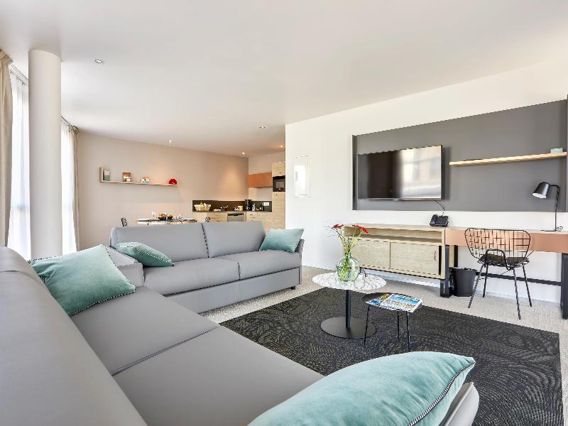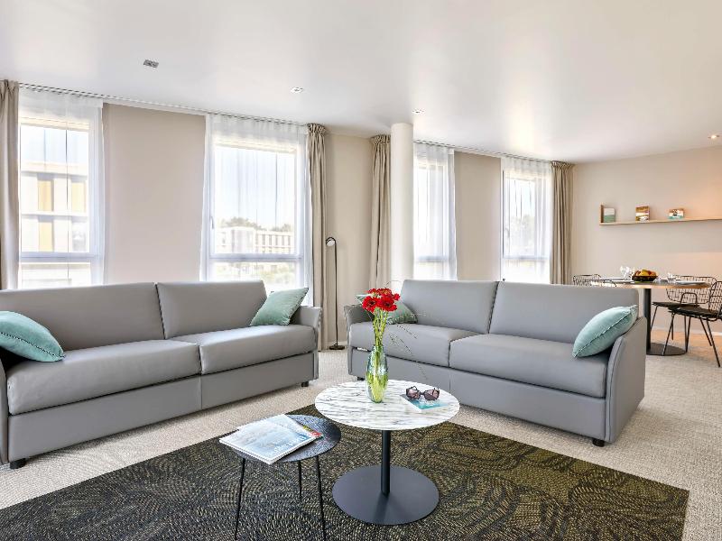 Al oeste de Vannes, en un entorno tranquilo, se encuentra una residencia de lujo con 85 espaciosas suites, con capacidad de 2 a 8 personas, amuebladas y decoradas con esmero. Recepción 24 horas para huéspedes, tanto de negocios como de placer, que podrán disfrutar de un espacio acogedor para relajarse y socializar. La residencia también ofrece una zona de bienestar (con cargo adicional) que incluye piscina, jacuzzi, hammam, sauna, salas de masaje y gimnasio. Completan la oferta conexión WIFI y aparcamiento vigilado gratuito las 24 horas, con 10 estaciones de carga (con cargo adicional).