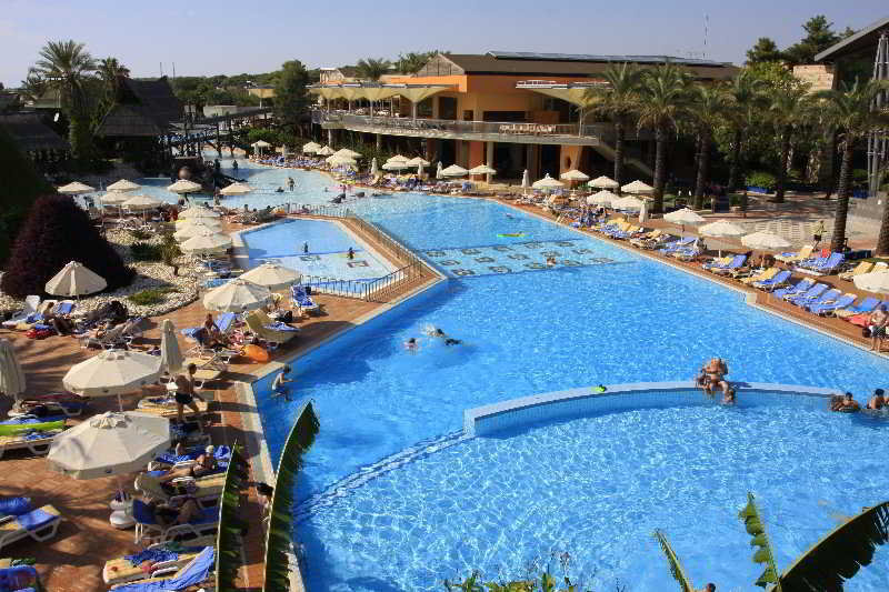 Este hotel vacacional, inaugurado en el 2002 y renovado en el 2005, está ubicado en un precioso jardín y dispone de nueve edificios de dos plantas y de un total de 829 habitaciones, de ellas 78 dobles y 751 habitaciones familiares y suites. Está climatizado y cuenta con un hall de entrada con recepción abierta las 24 horas, caja fuerte, servicio de cambio de divisa y ascensor. Asimismo, está dotado de una cafetería, un quiosco, un minimercado, una tienda, una peluquería, un bar, un pub, una discoteca, un auditorio, una sala de juegos, un restaurante climatizado, con zona para no fumadores y sillas altas para los niños, una sala de conferencias y una terminal de Internet (bajo cargo adicional). Se ofrece servicio de habitaciones, lavandería y atención médica, así como un aparcamiento y un parque infantil. Se cuidará a los niños de 4 a 8 años en el miniclub, de 8 a 12 en el maxiclub y de 12 a 17 en el teens club.