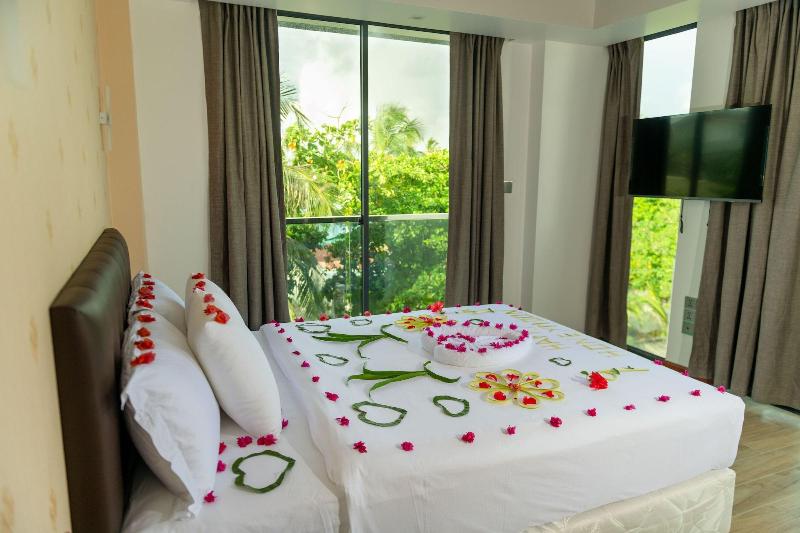 Ubicado en la isla Dhangethi, en el South Ari Atoll, nuestro hotel boutique de playa está a solo unos pasos de la playa para turistas. Un traslado en lancha rápida de 90 minutos desde Malé te trae a esta idílica escapada isleña. Nuestro hotel ofrece habitaciones en las plantas primera a sexta, cada una con balcón privado, baño privado y mobiliario moderno. Las comodidades incluyen aire acondicionado, set de té y café, secador de pelo, artículos de aseo, caja fuerte, mini nevera y TV vía satélite. Disfruta de nuestra piscina, restaurante y acogedora zona de recepción en la planta baja. El South Ari Atoll es famoso por los avistamientos de tiburones ballena y mantarrayas, y organizamos excursiones de buceo y snorkel, deportes acuáticos, salidas de pesca y picnics a bancos de arena e islas cercanas. La isla Dhangethi cuenta con una playa turística con tumbonas, sillas y columpios, y proporcionamos toallas de playa. Se puede alquilar equipo de snorkel. La isla también ofrece una variedad de tiendas, una farmacia, un centro de salud y varios restaurantes.