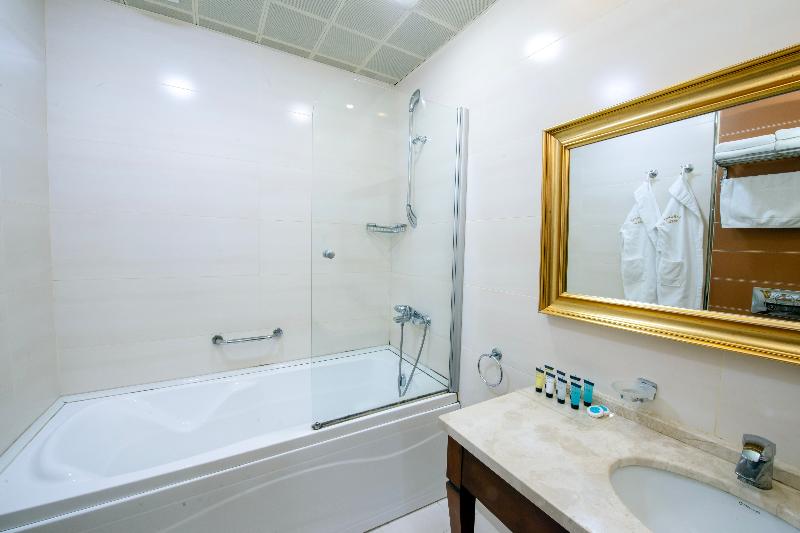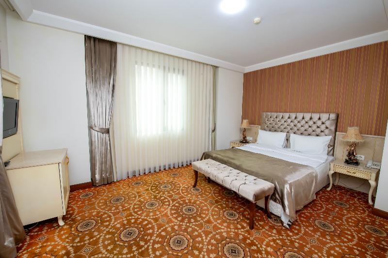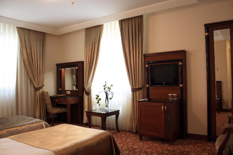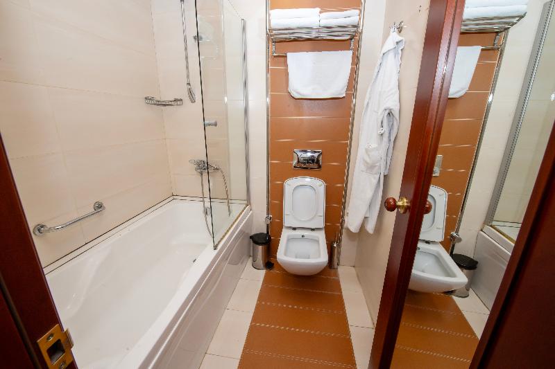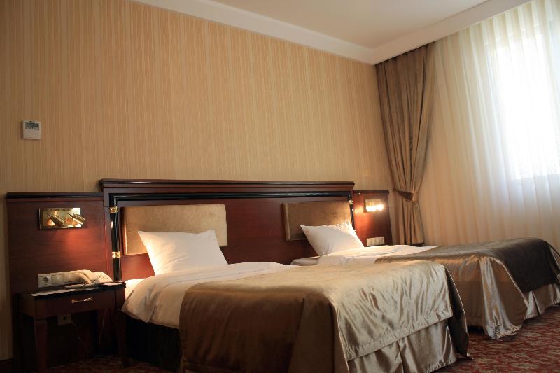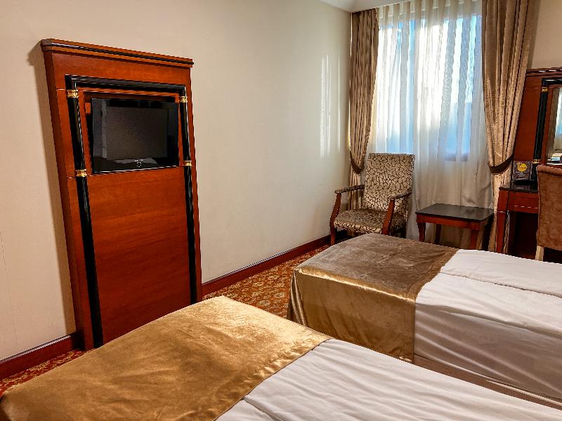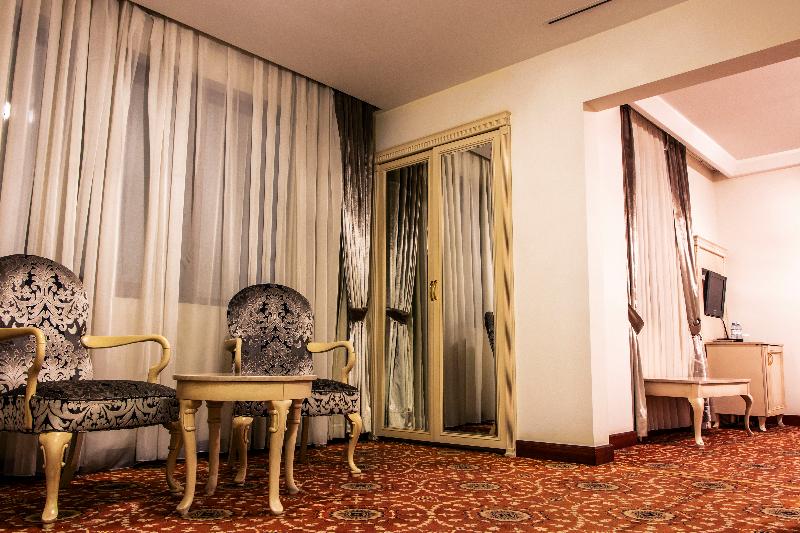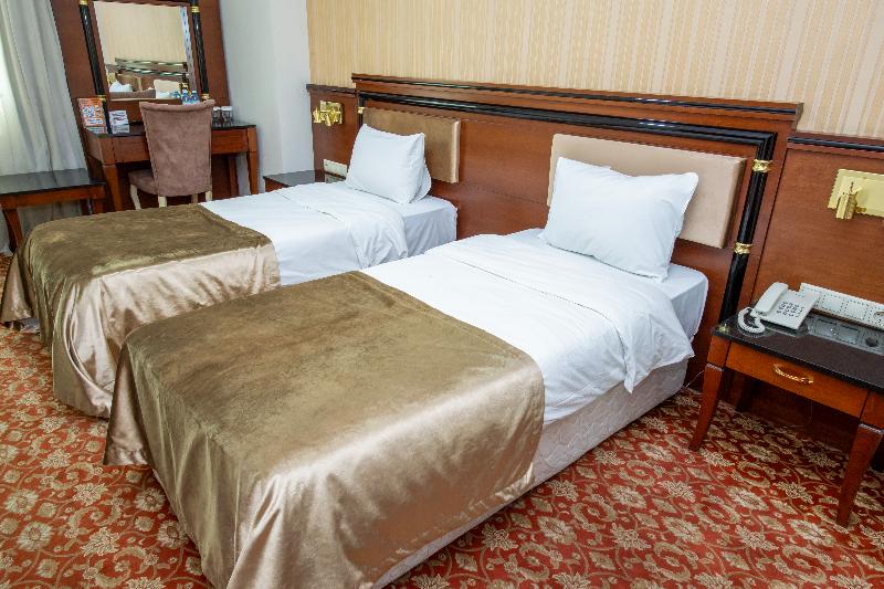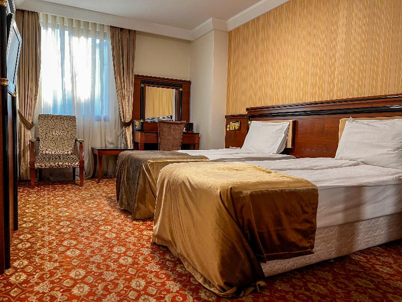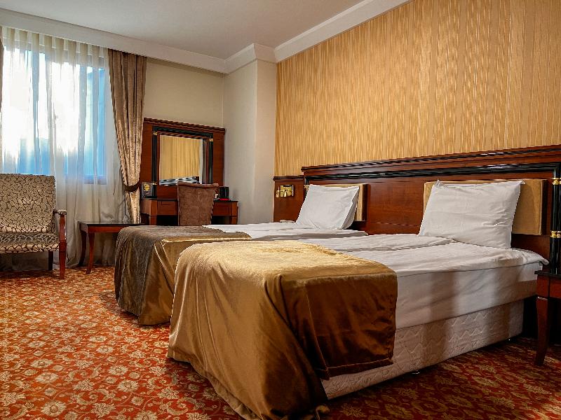 El Atropat Hotel, un hotel de negocios ubicado en la Ciudad Vieja de Bakú, te sitúa en el corazón de la historia antigua, rodeado de lugares emblemáticos como la Torre de la Doncella y el Palacio de los Shirvanshahs. A un paso de restaurantes y del metro, este hotel con aire acondicionado ofrece 30 habitaciones con comodidades VIP. Las instalaciones incluyen recepción 24 horas, cambio de divisas, sala de conferencias, ascensor, habitaciones para no fumadores y cajas fuertes en la habitación. También puedes disfrutar de servicio de habitaciones 24 horas, aparcamiento, reserva de viajes, lavandería y servicio de tintorería. Los servicios adicionales incluyen guía turístico, servicios de cosmética, conserjería, peluquería, bar, restaurante, acceso a internet y traslados al aeropuerto. Cada habitación cuenta con baño privado, cama doble, aire acondicionado con control individual, minibar, teléfono de línea directa, televisión por satélite, caja fuerte, cerraduras eléctricas y acceso a internet. También se proporciona un set de planchado y terraza. Para relajarte, puedes utilizar el gimnasio o reservar un masaje. El restaurante del hotel sirve cocina internacional. Se ofrecen excursiones a Sheki, Qabala, Guba, Qusar y Shamakhi por un coste adicional.
