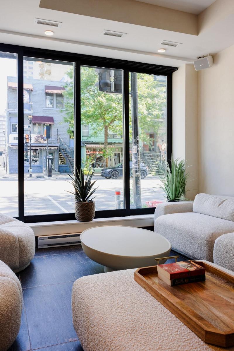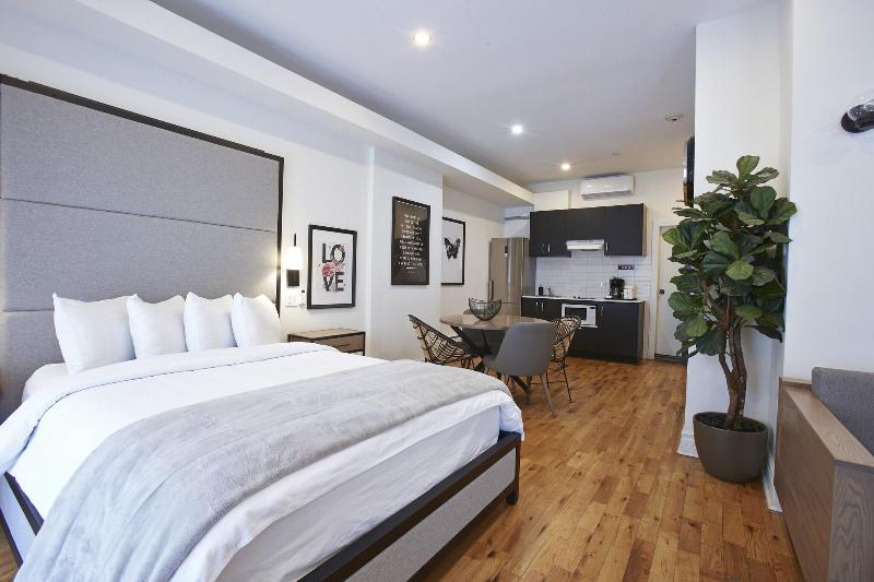 Disfrute de las vistas desde la terraza en la azotea y aproveche servicios como wifi gratis y servicio de conserjería. Saboree una deliciosa comida en Guru, el restaurante de Hotel & Spa Carré Saint-Louis. Termine el día con una bebida en el bar o lounge. Se sirve un desayuno continental gratuito todos los días, de 07:00 a 10:00. Tendrás a tu disposición check-in exprés, check-out exprés y periódicos gratuitos en el vestíbulo. Hay un aparcamiento sin asistencia (de pago) disponible. Siéntase como en casa en una de las 21 habitaciones con aire acondicionado y kitchenette. Los televisores de pantalla plana de 50 pulgadas con canales por cable brindan entretenimiento, mientras que el acceso a internet wifi gratuito le mantiene conectado. Las comodidades incluyen caja fuerte, escritorio y teléfono con llamadas locales gratuitas. Las distancias se muestran con una precisión de 0, 1 millas y kilómetros. Calle Saint Denis - 0, 1 km / 0, 1 mi- Plaza Saint Louis - 0, 1 km / 0, 1 mi- Calle Sherbrooke - 0, 1 km / 0, 1 mi- Calle Prince-Arthur - 0, 2 km / 0, 1 mi- Teatro St. Denis - 0, 6 km / 0, 3 mi- Bulevar Saint Laurent - 0, 6 km / 0, 4 mi- Parque La Fontaine - 0, 6 km / 0, 4 mi- CHUM - 0, 7 km / 0, 4 mi- Universidad de Quebec en Montreal - 0, 7 km / 0, 4 mi- Calle Sainte-Catherine - 0, 8 km / 0, 5 mi- Ciudad subterránea - 1 km / 0, 6 mi- Place des Arts - 1, 1 km / 0, 7 mi- Parque Jeanne-Mance - 1, 1 km / 0, 7 mi- Sala Wilfrid-Pelletier - 1, 2 km / 0, 8 mi- Complexe Desjardins - 1, 3 km / 0, 8 mi. Los aeropuertos más cercanos son: Aeropuerto Montreal Saint-Hubert Longueuil (YHU) - 15, 6 km / 9, 7 mi Aeropuerto Internacional de Montreal-Trudeau (YUL) - 20, 8 km / 12, 9 mi El Hotel & Spa Carré Saint-Louis se encuentra en Montreal (Plateau Mont-Royal), a 15 minutos a pie de la calle Sainte-Catherine y de Place des Arts. Este hotel está a 1, 9 km del Centro de Convenciones de Montreal y a 2 km del Viejo Puerto de Montreal.