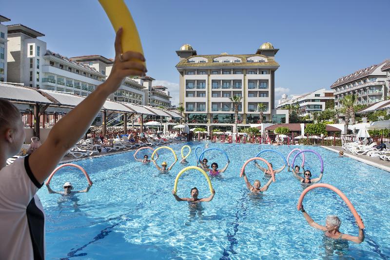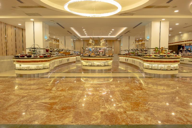 Este excelente resort ofrece un toque de lujo a cada vacación con su maravilloso diseño interior, una superficie de 16 000 m² con varias zonas de juego, diversos restaurantes y un spa premium. Está ubicado directamente en la hermosa playa del Mediterráneo. La histórica ciudad de Side, con sus sitios antiguos como el espectacular Temple of Apollo, está a un corto trayecto en coche. El restaurante estilo buffet sirve una variedad de platos con diferentes temas cada noche. Con una capacidad para 580 comensales, este restaurante interior/exterior puede albergar incluso las celebraciones más grandes (desayuno buffet, desayuno tardío, almuerzo, cena y sopa de medianoche). También hay un restaurante tradicional que ofrece un menú de cena diferente cada día.