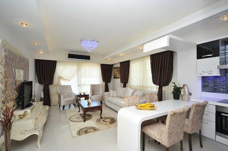 Ubicada en Alanya , esta propiedad es un lugar ideal de descanso y relajación. El Hotel fue edificado en 2013. El Hotel tiene 2 anexos. La propiedad cuenta con un edificio principal con 13 plantas anexas. La propiedad cuenta con 100 habitaciones. La propiedad consta de 5 suites, 80 apartamentos y 5 estudios. Ubicado en el corazón de la ciudad, el Hotel es una base ideal desde la que explorar la ciudad. El Hotel cuenta con fácil acceso al transporte público. El Hotel está a pocos minutos de los principales medios de transporte. El Hotel se encuentra cerca de las principales zonas de entretenimiento de la ciudad. Los huéspedes encontrarán la playa a tan solo unos minutos de la propiedad. El Hotel es accesible para minusválidos. Hay aparcamiento en las instalaciones. Se admiten mascotas de menos de 5 kg. El Hotel admite animales de más de 5 kg.