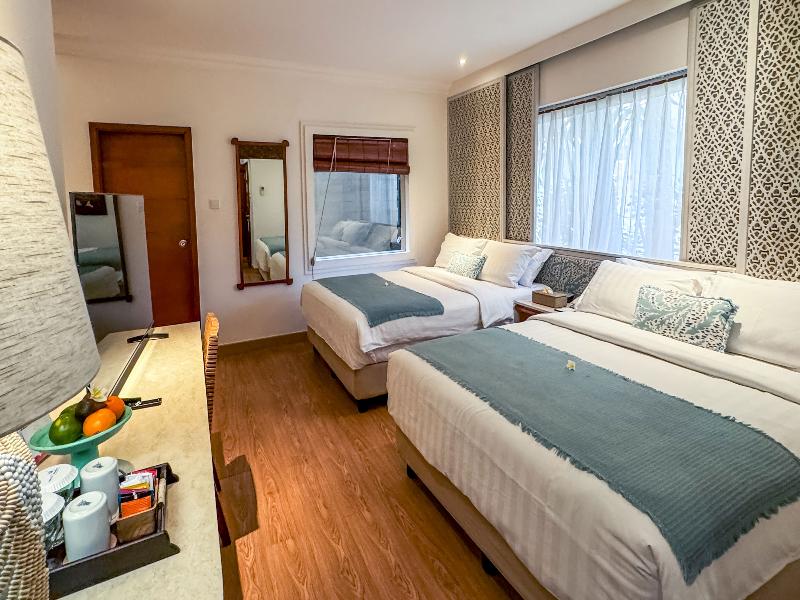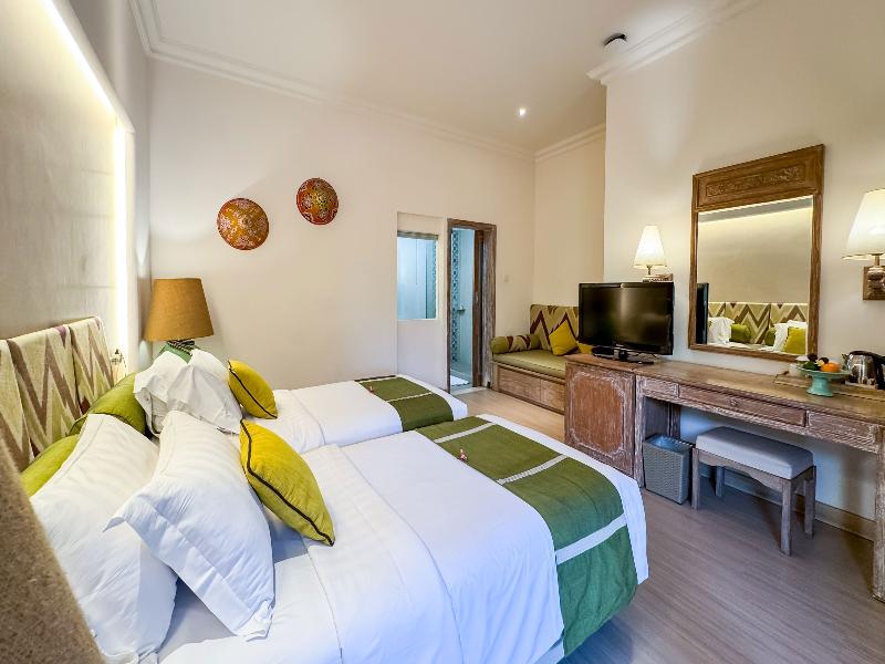 El Bali Mandira Beach Resort & Spa goza de una ubicación idílica cerca de varios kilómetros de playas de arena blanca junto al centro turístico de Legian. En los alrededores de este resort de playa encontrarás una gran variedad de locales de ocio, restaurantes, tiendas y bares a poca distancia a pie. Está a tan solo 6 km del aeropuerto Ngurah Rai. Considerado a menudo como el epítome del clásico estilo balinés, este complejo ofrece una amplia gama de opciones de entretenimiento para garantizar que cada estancia sea memorable. Dos elegantes restaurantes sirven a sus huéspedes una variedad de delicias culinarias con una mezcla de cocina asiática e internacional. También hay un acogedor bar salón donde te invitamos a relajarte y descansar, disfrutando de la famosa hospitalidad balinesa.