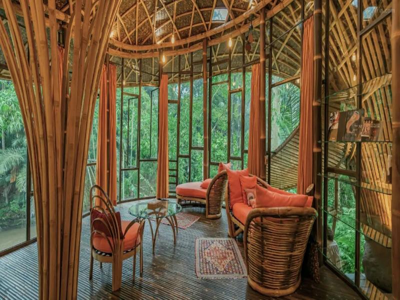 La propiedad se encuentra en Sayan Ridge, a 15 minutos al suroeste del centro de Ubud en Bali, rodeada por las impresionantes cascadas del río Ayung, verdes campos de arroz y las crestas volcánicas del monte Batu Kau. Encontrarás tiendas, el mercado de Ubud y el Palacio de Ubud a unos 6 km del hotel. El Bosque de los Monos está a unos 10 km del hotel. El Aeropuerto Internacional Ngurah Rai está a aproximadamente 1 hora y 15 minutos en coche. Este exclusivo club resort fue renovado en 2010 y consta de 4 casas. Radicalmente distintivo, ofrece una impresionante combinación de edificios de bambú y antiguas casas nupciales javanesas de madera de teca, cada una con detalles de diseño individuales en un entorno hermoso y confortable. Te recibiremos en un vestíbulo con servicio de salida 24 horas. Las instalaciones adicionales incluyen caja fuerte, restaurante, acceso inalámbrico a Internet, alquiler de bicicletas y servicio de lavandería. Si llegas en coche, puedes dejarlo en el aparcamiento del hotel. Todas las habitaciones disponen de baño con ducha. Las comodidades incluyen camas con dosel y mosquitera, iluminación nocturna con sensor de movimiento, teléfono de línea directa, caja fuerte y menaje para preparar té y café. El aire acondicionado regulable individualmente y la terraza son estándar. El hotel tiene una piscina al aire libre. También se ofrecen masajes y tratamientos de spa. El desayuno continental diario se puede servir en la terraza privada de la habitación o en cualquier otro lugar del resort. El almuerzo y la cena se pueden preparar a medida según tus gustos y necesidades.