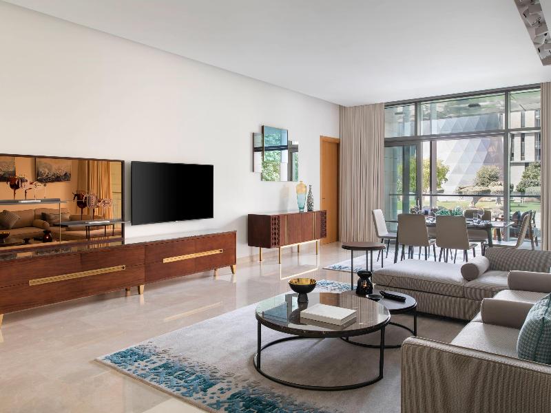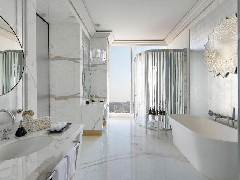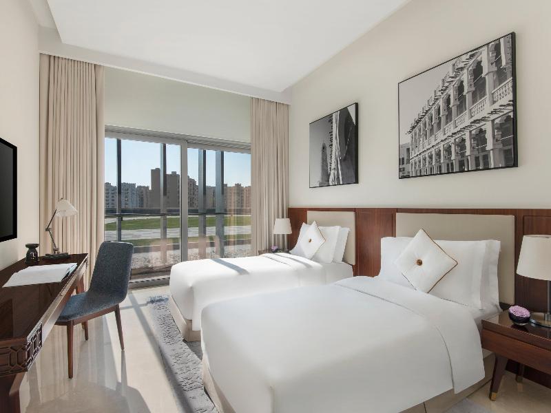 Alójate en el Banyan Tree Doha en Doha y estarás a 5 minutos en coche de Doha Corniche y la Galería de Arte Souq Waqif. Este hotel de 5 estrellas está a 10, 1 km de Katara Beach y a 4, 9 km de la Mezquita Imam Muhammad ibn Abd al-Wahhab. Date un capricho con una visita al spa de servicio completo. Encontrarás también conexión a Internet wifi gratis, una peluquería y tiendas en el alojamiento. Tendrás a tu disposición un centro de negocios, una recepción abierta las 24 horas y un ascensor. Este hotel pone a tu disposición 9 salas de reuniones para celebrar eventos. Se ofrece servicio de transporte al aeropuerto (ida y vuelta) de pago (disponible las 24 horas), así como un aparcamiento con asistencia gratuito. Disfruta de la cocina italiana en Il Galante, uno de los 3 restaurantes de este hotel, o pide algo por el servicio de habitaciones con horario limitado. Relájate con un refresco del bar o lounge. Se sirve un desayuno continental todos los días de 6:30 a 10:30 con un coste adicional. Te sentirás como en tu propia casa en cualquiera de las 341 habitaciones con aire acondicionado y Smart TV. La televisión por cable te proporcionará entretenimiento. El cuarto de baño está provisto de bañera y ducha independientes con cabezal de ducha tipo lluvia y bidé. Entre las comodidades, se incluyen teléfono, escritorio y una zona de estar separada. Actualización del hotel Estamos llevando a cabo una emocionante ampliación en el Banyan Tree Doha, que traerá consigo habitaciones adicionales y servicios mejorados diseñados para elevar tu experiencia. Mientras trabajamos para completar este proyecto para el otoño de 2025, es posible que haya alguna actividad ocasional durante tu estancia. Agradecemos tu comprensión y paciencia mientras damos vida a estas mejoras, y estamos seguros de que la comodidad y el lujo añadidos valdrán la pena la espera.