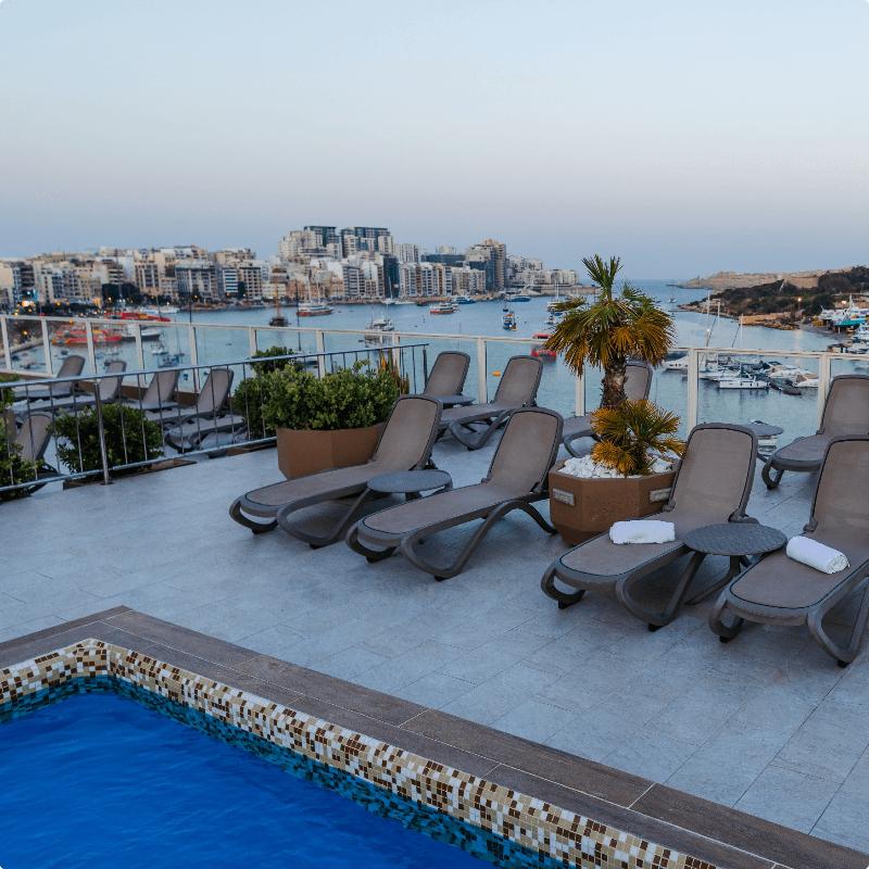 En el corazón de Gzira, Bayview Hotel by ST Hotels se encuentra a 5 minutos en coche del Paseo Marítimo de Sliema y del Grand Harbour. Este hotel con spa se encuentra a 3, 8 km de St George's Beach y a 5, 5 km del Sliema Ferry. Consiéntete con una visita al spa, que ofrece masajes y tratamientos corporales. Puedes disfrutar de instalaciones recreativas, como piscina al aire libre, piscina cubierta y bañera de hidromasaje. Este hotel también ofrece acceso inalámbrico a internet de cortesía, servicios de conserjería y una peluquería. Llegar a las atracciones cercanas es muy fácil con el servicio de transporte de la zona (con cargo). Siéntete como en casa en una de las 156 habitaciones con aire acondicionado. El acceso inalámbrico a internet de cortesía te mantiene conectado y la programación por satélite está disponible para tu entretenimiento. Los baños privados con ducha y bañera combinadas incluyen artículos de tocador de cortesía y secadores de pelo. Las comodidades incluyen teléfonos, así como cajas fuertes y escritorios. Visita el restaurante del hotel, Seastar Restaurant, para cenar o compra snacks en la cafetería. Relájate con tu bebida favorita en el bar o lounge o en el bar junto a la piscina. El desayuno bufé está disponible todos los días de 7:00 a 10:00, con cargo. Las comodidades destacadas incluyen un centro de negocios, servicio de tintorería/lavandería y recepción disponible las 24 horas. Se ofrece transporte al aeropuerto de ida y vuelta con cargo (disponible las 24 horas) y estacionamiento limitado en el lugar. Las distancias se muestran con una precisión de 0, 1 millas y kilómetros.