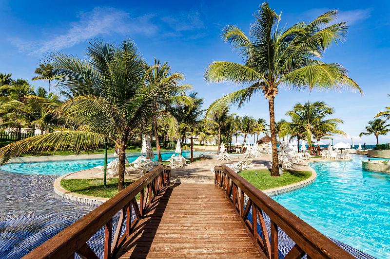Rodeado de un exuberante y hermoso jardín tropical, el excelente Beach Class Muro Alto Resort goza de una ubicación paradisíaca en la región de Porto de Galinhas, en la costa de Pernambuco, directamente sobre las playas de arena blanca y fina que parecen extenderse infinitamente. Porto de Galinhas se encuentra a unos 6 km de distancia; Recife, con su aeropuerto internacional, está a una distancia aproximada de 80 km. Los huéspedes pueden elegir alojamiento entre suites y bungalows repartidos por la encantadora zona ajardinada. El hotel cuenta con una de las piscinas al aire libre más grandes de Brasil, con una superficie de 3300 m². Las instalaciones incluyen numerosas opciones deportivas, como un gimnasio, pistas de tenis, canchas de vóley playa y fútbol. Los niños están a cargo del club infantil. El restaurante ofrece cocina regional e internacional, y los huéspedes pueden elegir entre cuatro bares. Para mayor comodidad, el hotel ofrece un servicio de transporte programado gratuito a Porto de Galinhas.