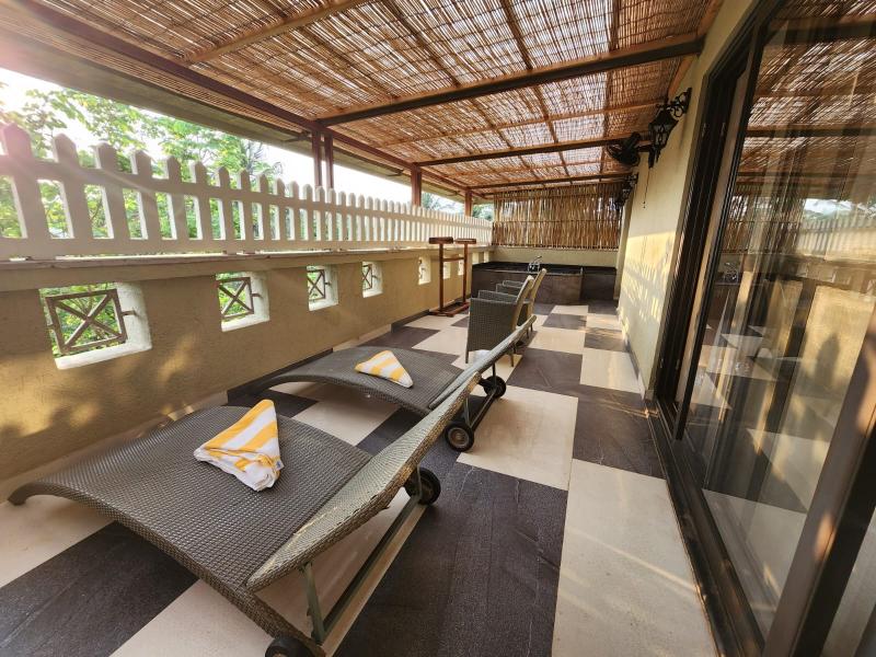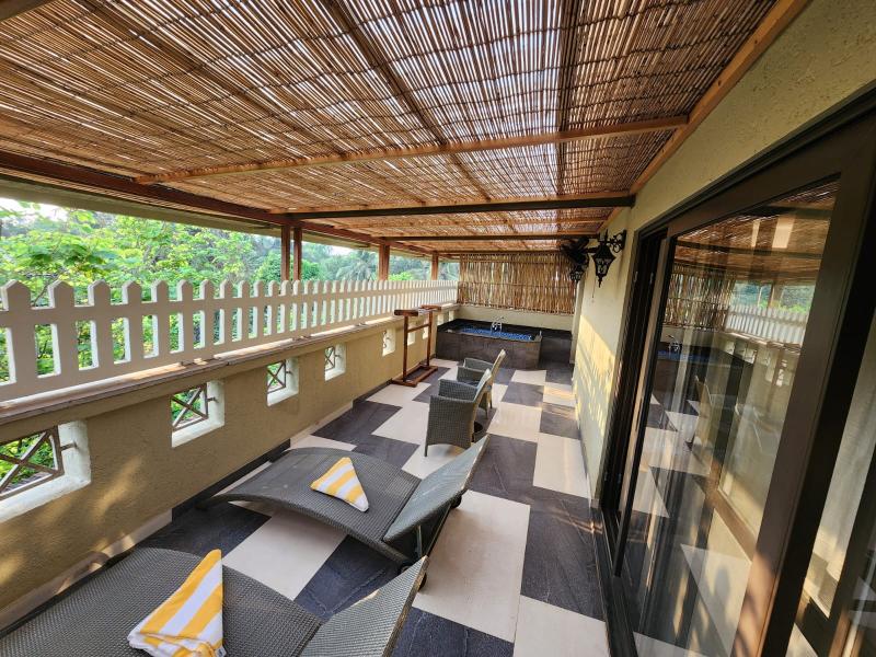 El resort se encuentra en Colva, en el sur de Goa. Las playas limpias, vírgenes y de arena blanca de Colva son accesibles para los huéspedes desde un sendero bien pavimentado dentro de las instalaciones del resort. El aeropuerto se encuentra a 18 km del resort y la estación de tren de Madgao está a 12 km. El resort ofrece a sus huéspedes una experiencia de alojamiento memorable en un entorno tranquilo y virgen. El resort cuenta con 30 habitaciones elegantemente diseñadas y amuebladas con un concepto de villa, y ofrece a los huéspedes las mejores instalaciones y servicios para que su estancia sea cómoda. Todas las habitaciones del resort presentan un diseño contemporáneo y lujoso, y están completamente amuebladas con texturas de madera, tonos de colores naturales y suelos de mármol. Los huéspedes tienen a su disposición gimnasio y piscina al aire libre. Este resort es el lugar perfecto para crear recuerdos inolvidables.