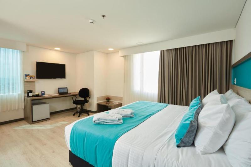 El Hotel Nivari Duitama se encuentra en Duitama, Boyacá, conocida como la 'Perla de Boyacá'. Este nuevo hotel Best Western ofrece excelente confort y un servicio de alta calidad. Los huéspedes pueden disfrutar de comodidades que incluyen un restaurante, bar, gimnasio, centro de negocios y Wi-Fi de alta velocidad gratis. Las modernas áreas públicas y las 72 habitaciones bien equipadas e insonorizadas brindan una estancia cómoda. El hotel está convenientemente ubicado en Solano, frente al Innovo Plaza Mall y cerca de Pueblito Boyacense, restaurantes, tiendas y lugares de entretenimiento. Boyacá es conocida por sus valles y desiertos, que exhiben la diversa flora y fauna de Colombia. Nota: Para calificar para la exención de impuestos colombiana para no residentes, el pago debe ser realizado directamente por el no residente o por una agencia de viajes registrada. La exención se aplica a visitas de ocio/vacaciones con estatus migratorio válido (PIP-3, PIP-5, PIP-6, PIP-10 o Visa TP-7, TP-11, TP-12). De lo contrario, se aplican impuestos.