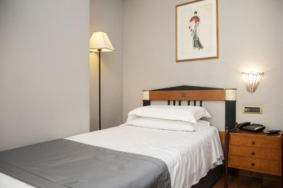 Este hotel, construido en 1870, es algo único en Roma. Cada detalle de este establecimiento es de estilo Art decó, diseñado de acuerdo con el famoso movimiento artístico que empezó con el cambio al pasado siglo. El movimiento alcanzó su cúspide en 1925, con una histórica exposición de artes decorativas en París, de la cual toma su nombre. Los muebles del hotel han sido escogidos cuidadosamente y cuentan con piezas originales, en ocasiones reproducciones perfectas de muebles de época. La atención al detalle en las lámparas, aplicaciones, moquetas e imágenes le hará viajar al pasado. Este histórico hotel urbano comprende un total de 70 habitaciones repartidas en 5 plantas. Entre las instalaciones de este establecimiento climatizado se incluyen zona de vestíbulo con servicio de salida y recepción 24 horas, caja fuerte, 2 ascensores, bar y restaurante. Además, podrá también hacer uso de instalaciones para conferencias, conexión a Internet y del servicio de habitaciones.