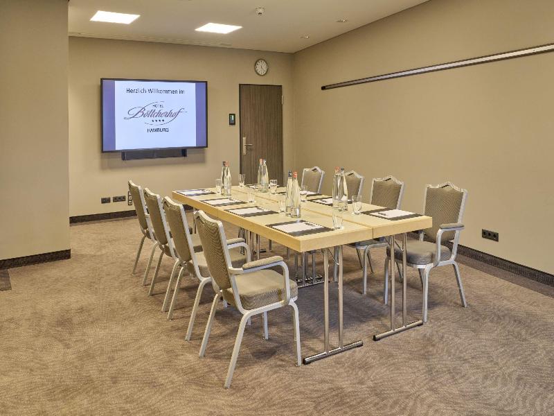 El hotel superior de 4 estrellas Böttcherhof, de gestión privada, te da una cálida bienvenida. En sus 164 habitaciones, confortable y funcionalmente amuebladas, se ofrece una amplia gama de servicios a partir de la categoría de habitación de negocios, tales como: aire acondicionado, pantalla plana, wifi, caja fuerte para portátiles, así como una estación de té y café. Nuestros huéspedes también pueden hacer uso del amplio espacio de bienestar y fitness. Esta área está equipada con una bio-sauna y sauna finlandesa, baño de vapor, piscina Kneipp, así como salas de relajación y una sala de fitness con 14 máquinas Technogym, de uso gratuito para los huéspedes del hotel. Los tratamientos de masaje y cosmética se pueden reservar con un coste adicional. Para conferencias, seminarios o presentaciones de productos, hay 20 salas de eventos disponibles, de 19 a 200 m². Para tu bienestar físico, el restaurante Johann's ofrece por la mañana un amplio bufé de desayuno. Para el almuerzo y la cena, se sirven platos regionales e internacionales a la carta, complementados con ofertas de temporada. En el bar del hotel Johann's, puedes comenzar o terminar la noche cómodamente. Con una buena conexión con la A1, salida Hamburg-Moorfleet a 4, 5 kilómetros de distancia, este hotel de negocios y conferencias está convenientemente ubicado. Se puede llegar al centro de la ciudad en transporte público en aproximadamente 23 minutos. Justo frente al hotel hay una parada de autobús (estación: Blaue Brücke, líneas 160 y 260), la parada de metro más cercana (estación: Horner Rennbahn) está a dos kilómetros.