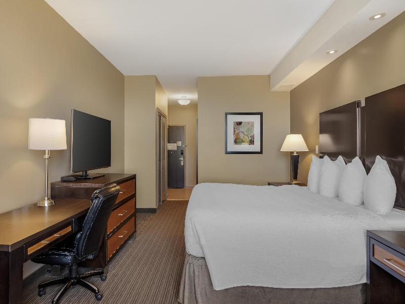 El Best Western Plus Moose Jaw, convenientemente ubicado junto a la autopista 1, te ofrece fácil acceso y un alojamiento cómodo para tu visita. A poca distancia en coche de Mosaic Place, este hotel es una opción ideal para asistir a conciertos y eventos deportivos. Disfruta de comodidades como nuestra piscina con tobogán, gimnasio y centro de negocios. Explora atracciones cercanas como los Tunnels of Moose Jaw, el Casino Moose Jaw y el Western Development Museum. Nuestro hotel es uno de los dos únicos en Moose Jaw con piscina, tobogán y jacuzzi, perfecto para vacaciones familiares o equipos deportivos. El centro de negocios, abierto las 24 horas, ofrece servicios gratuitos de impresión, escaneo y fax. Mantén tu rutina de ejercicios en nuestro gimnasio, abierto todos los días de 7:00 a 22:00. Cuenta con equipamiento moderno y vista a la piscina. Disfruta de wifi gratuito y un desayuno caliente de lujo, que incluye huevos, carne y gofres, servido de lunes a viernes de 6:00 a 9:00 y fines de semana/festivos de 7:00 a 10:00. Todas las habitaciones incluyen televisores de pantalla plana, minineveras, microondas, cafeteras, planchas, tablas de planchar y secadores de pelo. Descansa cómodamente en nuestros colchones con acolchado tipo almohada. Para estancias prolongadas, nuestras suites con cocina americana ofrecen una opción práctica y económica. Vive una estancia memorable en el Best Western Plus Moose Jaw, que ofrece un servicio amable, tarifas asequibles y un alojamiento acogedor. ¡Reserva tu estancia hoy mismo!