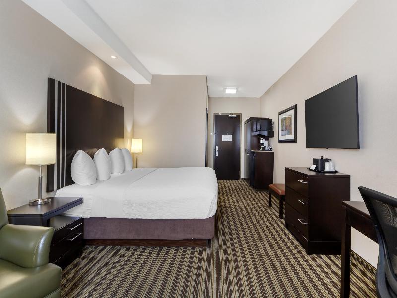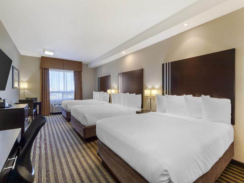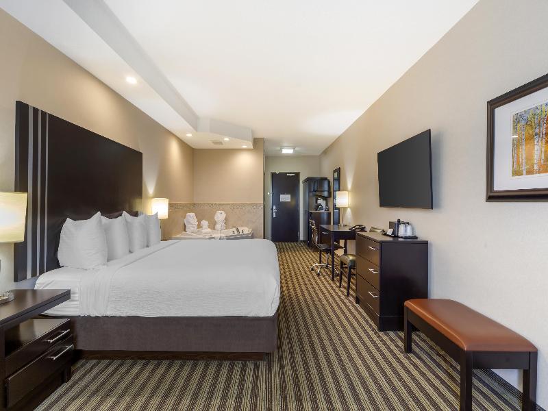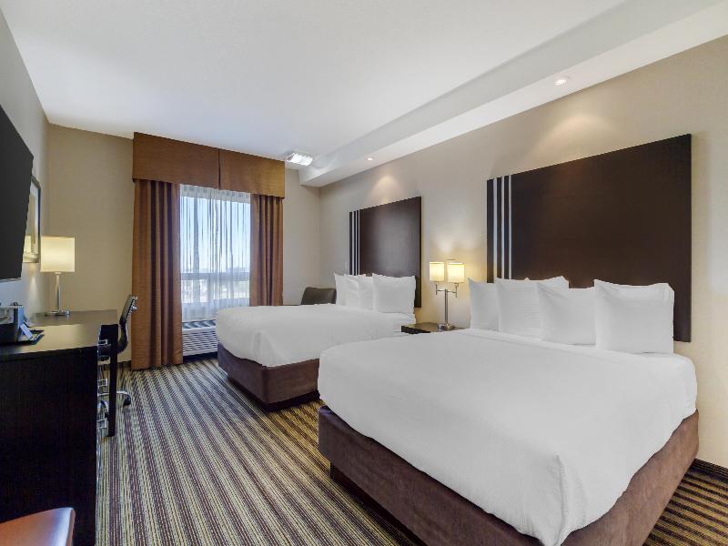 ¿Viajas a Upgrader Alley en Strathcona County? Querrás un hotel en Sherwood Park, AB, que te ubique cerca de tu destino y te ofrezca todo lo que necesitas para aprovecharlo al máximo. Por eso, te alegrarás de haberte alojado en el Best Western Plus Sherwood Park Inn & Suites. Reserva tu estancia aquí para un viaje placentero con internet de alta velocidad gratis y desayuno de cortesía. Ofrecemos una ubicación conveniente a solo 2 km del punto donde se encuentran la Yellowhead Highway (Ruta 16) y Anthony Henday Drive (Carretera 216), parte del sistema de la Trans-Canada Highway. Así tendrás fácil acceso a Refinery Row si vienes por trabajo, y al Kinsmen Leisure Centre, Millennium Place y Broadmoor Arena si vienes por placer. Y durante tu estancia, puedes disfrutar de nuestra piscina cubierta climatizada de agua salada y jacuzzi. O visitar nuestro gimnasio. Allí, puedes ejercitarte con pesas libres, máquinas universales y equipo cardiovascular como cinta de correr, elíptica y escaladora. Luego, por la mañana, únete a nosotros para disfrutar de un desayuno de cortesía que incluye huevos, salchichas, gofres belgas y opciones saludables como granola, fruta y yogur. Seguro que te gustará tu habitación en este hotel 100 % libre de humo y ecológico. Hemos combinado una decoración moderna y fresca con las comodidades que necesitas para sentirte como en casa. Hablamos de un televisor de alta definición de 46 pulgadas para tu entretenimiento y un colchón con cubierta tipo almohada para garantizar una excelente noche de sueño. También hablamos de un refrigerador, microondas y cafetera, para que puedas disfrutar de refrigerios y bebidas sin tener que ir a ningún lado. Haz del Best Western Plus Sherwood Park Inn & Suites tu hogar fuera de casa en tu próxima visita al Alberta's Industrial Heartland. Nuestra piscina y gimnasio están ahora abiertos de acuerdo con las pautas de Alberta Health.