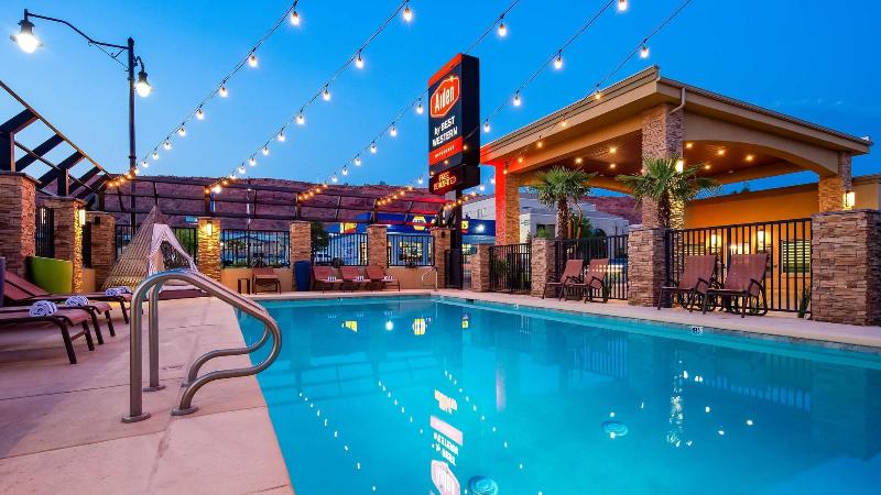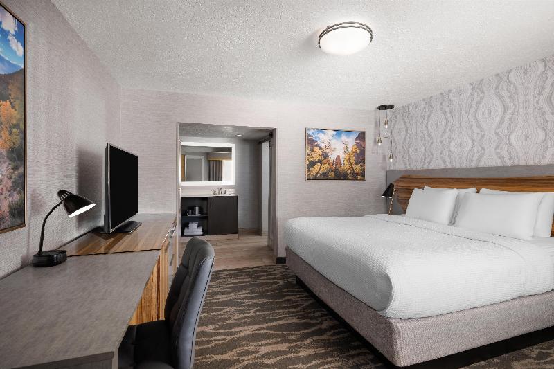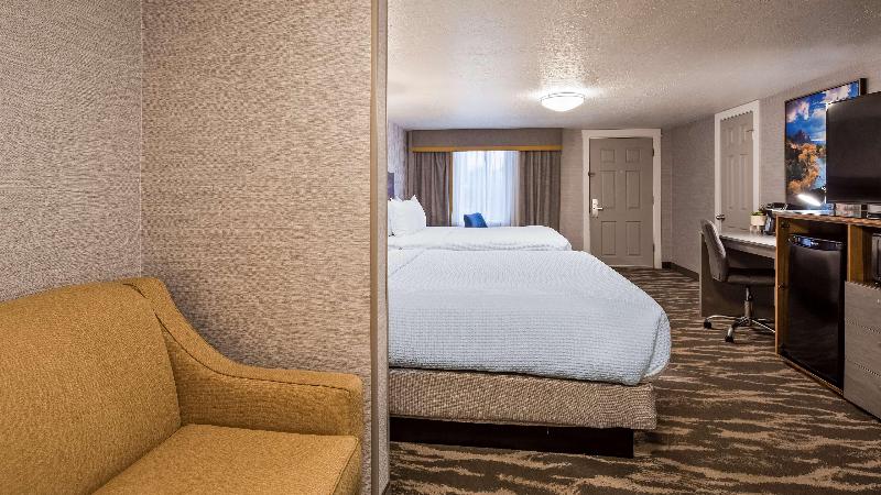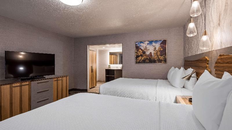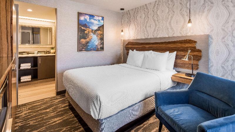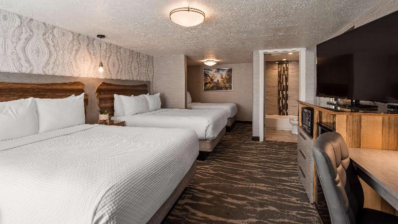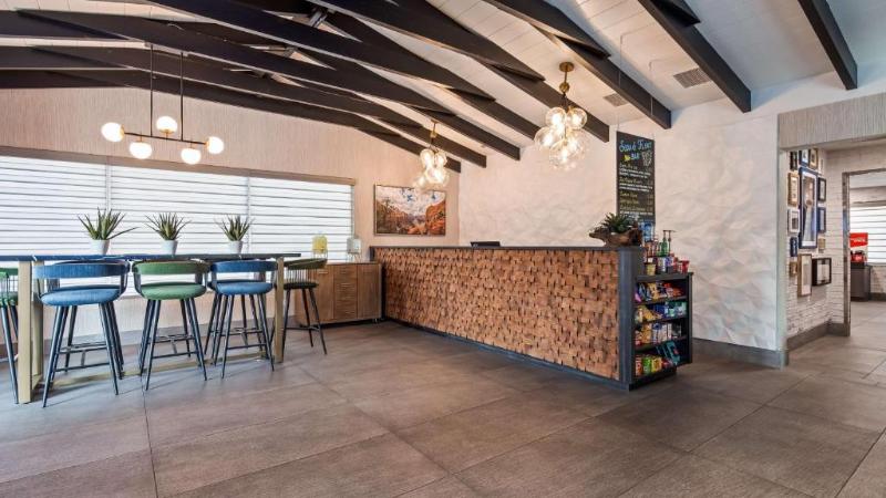 El Best Western Travel Inn, con sus recientes renovaciones de estilo boutique, ofrece una estadía relajante y cómoda en el corazón del centro. Disfruta de televisores de pantalla plana de 50 pulgadas, muebles de alta gama y wifi gratis. Comienza tu día con un desayuno caliente de cortesía que incluye huevos revueltos, tocino, salchichas, waffles, fruta fresca, yogur, cereales y bollería. Aprovecha el alquiler gratuito de bicicletas para explorar los restaurantes, tiendas y lugares de entretenimiento cercanos. Relájate en nuestra bañera de hidromasaje interior disponible todo el año o en la piscina climatizada al aire libre (abierta de febrero a noviembre). Para quienes viajan por negocios, ofrecemos internet inalámbrico gratuito en todo el hotel. Estamos convenientemente ubicados cerca de varios destinos clave: Snow Canyon State Park (15 minutos), Zion National Park (45 minutos), Dixie State University (5 minutos), Dixie Regional Medical Center (5 minutos) y Vernon Worthen Park (3 cuadras). Ya sea por negocios o por placer, el Best Western Travel Inn te promete una estadía encantadora y práctica. ¡Contáctanos para reservar tu habitación hoy mismo!
