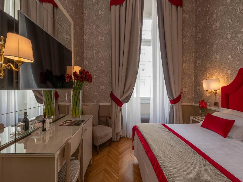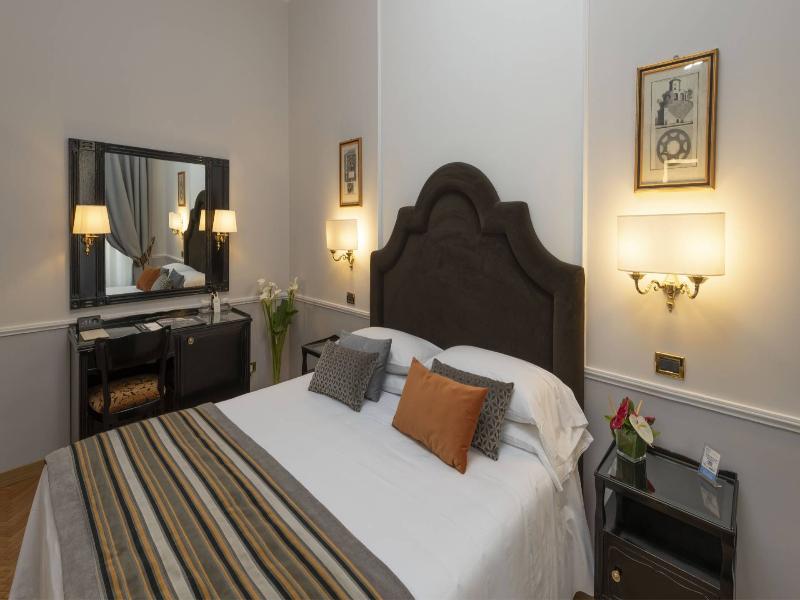 Este hotel se encuentra en el centro histórico de Roma. El hotel está situado con fácil acceso a las fascinantes atracciones que ofrece esta intrigante ciudad. Este hotel está ubicado muy cerca de una gran variedad de tiendas, restaurantes y lugares de entretenimiento. El aeropuerto de Fiumicino está a solo 35 km. Este maravilloso hotel, sin duda, te impresionará, con un diseño arquitectónico encantador que se integra a la perfección con su entorno histórico. El hotel exhibe una impresionante colección de pinturas del Risorgimento italiano. Las habitaciones están magníficamente equipadas y ofrecen un ambiente tranquilo en el que podrás relajarte por completo al final del día. La gama de instalaciones y servicios que ofrece este hotel te impresionará.