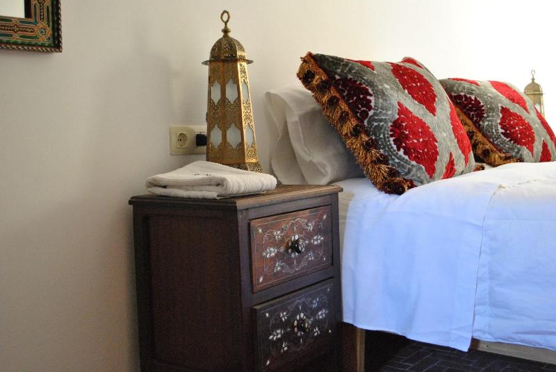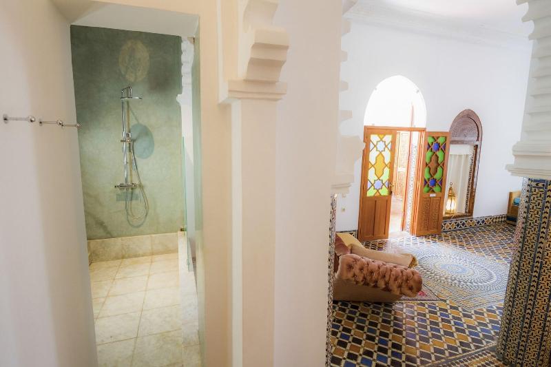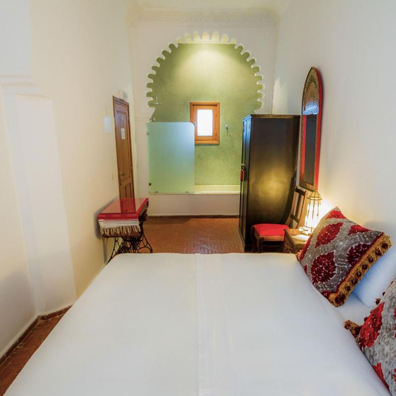 El patio interior del Blanco Riad data del siglo XVIII. Sus columnas y arcos sostienen un balcón que da acceso a las habitaciones. El jardín se llena con los relajantes sonidos de la fuente, mientras que la terraza de la azotea ofrece impresionantes vistas de la Medina y la Casbah. En 1860, el riad albergó el Consulado Español, y durante el protectorado, fue el hogar del Bacha. Posteriormente, la familia Ben Hassain residió allí.