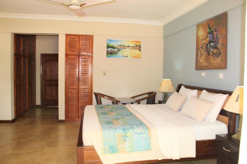 Alójate en Bojo Beach Resort en Bortianor, junto al mar y a 15 minutos en coche de Kokrobite Beach y House Party Karts. Este hotel de playa se encuentra a 22, 9 km de Ghana State House y a 26 km de la Embajada de los Estados Unidos. Relájate en la playa privada o disfruta de otras instalaciones recreativas, como una piscina al aire libre. Entre los servicios adicionales de este hotel se incluyen wifi gratis, servicio de conserjería y una tienda de regalos. El servicio de traslado gratuito a la playa te permitirá llegar fácilmente a la arena. Tendrás conexión a Internet por cable gratis, un centro de negocios y servicio de tintorería a tu disposición. Se ofrece servicio de transporte al aeropuerto (ida y vuelta) de pago (disponible las 24 horas), así como aparcamiento sin asistencia gratuito. Come algo en uno de los numerosos establecimientos de este hotel, que incluyen 3 restaurantes y una cafetería. Al final del día, puedes relajarte con una bebida en el bar o lounge o en el bar junto a la piscina. Se sirve un desayuno continental gratuito todos los días de 7:00 a 10:00. Te sentirás como en casa en una de las 35 habitaciones con aire acondicionado y televisión de pantalla plana. La conexión a Internet wifi gratis te mantendrá en contacto con los tuyos, y también podrás ver la programación por satélite. Entre las comodidades, se incluyen teléfono y caja fuerte.