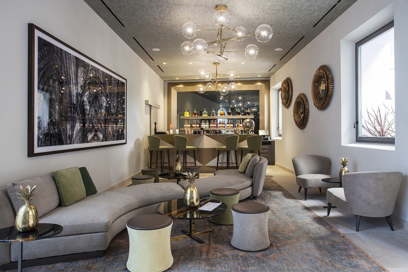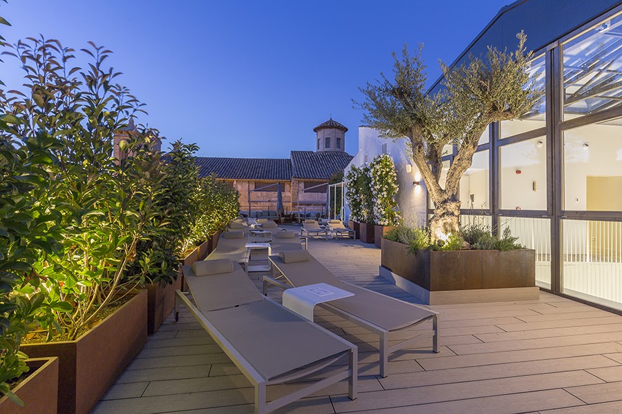 El hotel se encuentra emplazado en una casa que data del siglo XVIII y consta de una planta baja donde situamos: la recepción, el recibidor, el lobby, el restaurante, la coctelería y el SPA, y tres plantas superiores donde se distribuyen las habitaciones del hotel. En la cuarta encontramos la terraza solárium que cuenta con un plunge pool, tumbonas de diseño, duchas y maravillosas vistas al casco antiguo y la Catedral. Desde aquí nuestros huéspedes pueden disfrutar de la vida de Palma desde las alturas.