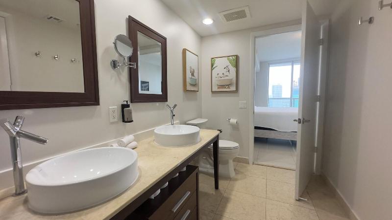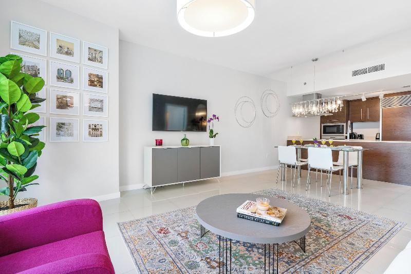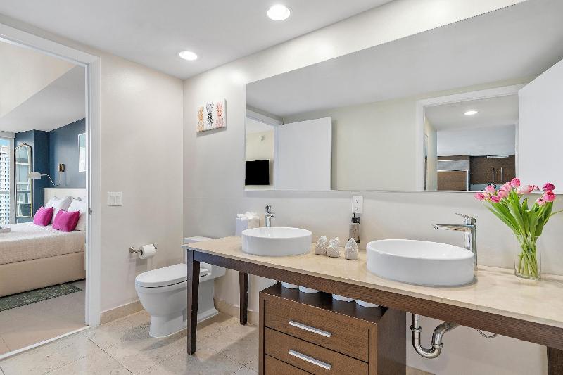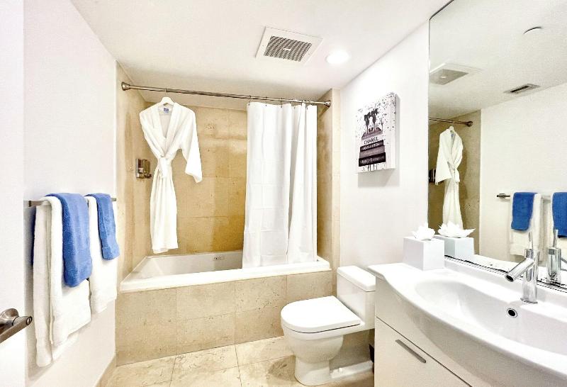 Alójate en Brickell by Miami Vacation Rentals y estarás en el corazón de Miami, a 4 minutos en coche de Brickell City Centre y a 7 minutos de Bayside Marketplace. Este hotel de 4 estrellas está a 2, 2 km de American Airlines Arena y a 11, 3 km de University of Miami. Aprovecha las opciones de ocio, como una piscina al aire libre, una bañera de hidromasaje y una sauna. Tendrás cajero automático, ascensor y aparcamiento sin asistencia (de pago) a tu disposición. Disfruta de una comida en el restaurante o de un aperitivo en la cafetería. Apaga la sed con tu bebida favorita en el bar o lounge. Siéntete como en casa en una de las 15 habitaciones con decoraciones diferentes, equipadas con cocina con frigorífico/congelador grande y horno. Las habitaciones disponen de balcón amueblado. La televisión Smart de 50 pulgadas con canales digitales proporciona entretenimiento, mientras que el acceso gratuito a Internet wifi te mantiene conectado. Entre las comodidades, se incluyen caja fuerte y microondas, además de un servicio de limpieza disponible a petición.