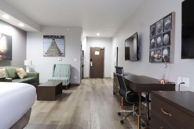 Nuestro recién construido Best Western Premier Executive Residency Grand Texas Hotel está ubicado en New Caney, Texas, justo al lado de la US-59. Este hotel Premier Executive Residency forma parte de la familia Best Western. El hotel ofrece un estándar superior, un ambiente refinado, comodidades de primera clase, alojamiento superior y un servicio excepcional. Los viajeros disfrutarán de instalaciones y servicios modernos que incluyen un gimnasio, restaurante en el hotel, dos bares de cócteles, patio, sala multimedia y espacios de reunión en todo el hotel. Además, mantente conectado durante tu visita con wifi gratuito, puertos de datos y acceso USB en todo el hotel. Amplias y elegantes habitaciones te dan la bienvenida con acabados detallados, ropa de cama de primera calidad y prácticas comodidades como un minirrefrigerador, microondas, cafetera, televisor de pantalla plana de 55 pulgadas, caja fuerte y sofá cama en una sala de estar independiente.