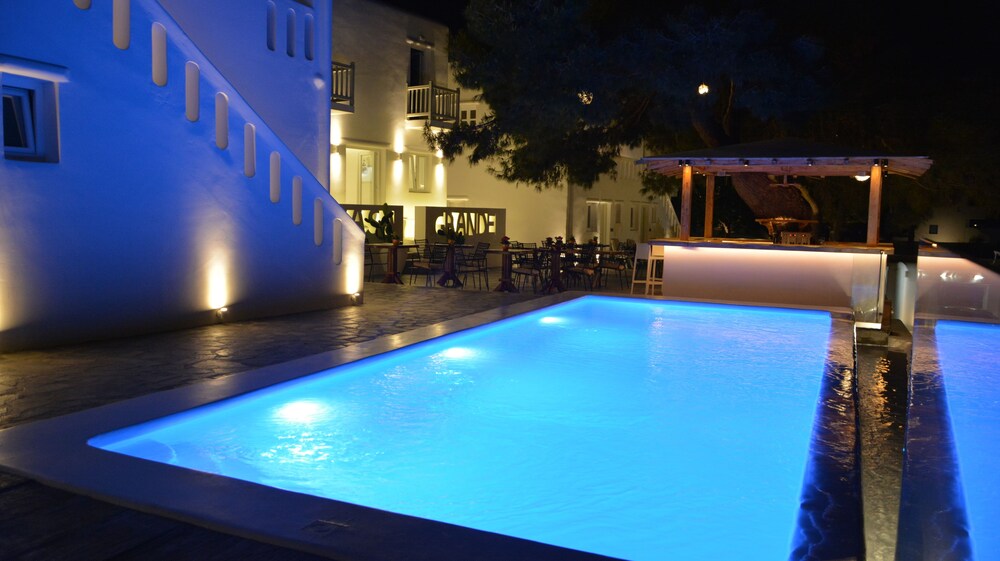 Si decides alojarte en Casa Grande de Míkonos, estarás junto al mar, a 4 min a pie de Playa de Platis Gialos y a 14 de Playa de Psarou. Además, este hotel de 4 estrellas se encuentra a 4,8 km de Playa de Ornos y a 5,2 km de Puerto antiguo de Mikonos.Con una piscina al aire libre y muchas otras instalaciones recreativas a tu disposición, no te quedará ni un minuto libre. Tienes también una terraza y jardín donde sentarte a contemplar el paisaje. Encontrarás también conexión a Internet wifi gratis, servicios de conserjería y un salón de fiestas.Tendrás un centro de negocios, check-in exprés y check-out exprés a tu disposición. Hay un aparcamiento sin asistencia gratuito disponible.En este hotel tienes un restaurante y una cafetería a tu disposición para comer algo. Pon la guinda en el pastel a un día fantástico con una bebida en el bar o lounge o en el bar junto a la piscina. Se ofrece un desayuno bufé gratuito todos los días de 8:00 a 10:30.Te sentirás como en tu propia casa en cualquiera de las 22 habitaciones con frigorífico y televisión de plasma. La conexión a Internet wifi gratis te mantendrá en contacto con los tuyos; también podrás ver tu programa favorito en el televisor con canales por satélite. El cuarto de baño está provisto de ducha, artículos de higiene personal gratuitos y secadores de pelo. Entre las comodidades, se incluyen teléfono, además de un servicio de limpieza disponible todos los días. Puedes solicitar también tabla de planchar con plancha.