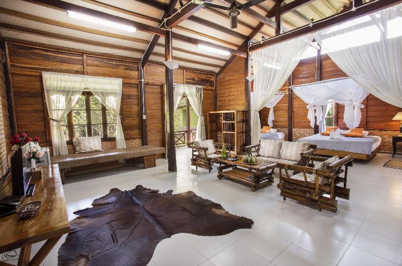 Alójate en Cat Tien Jungle Lodge en Tan Phu, a solo 3 minutos a pie del muelle Pha Nam Cat Tien y a 11 minutos a pie del Parque Nacional Cat Tien. Este resort está a 0, 6 km del Parque Nacional Cat Tien y a 2, 4 km de la Pagoda Hong Trung Son. Aprovecha las opciones recreativas, que incluyen una piscina al aire libre, una bañera de hidromasaje y un sauna. Otros servicios de este resort incluyen acceso inalámbrico a internet de cortesía, servicios de conserjería y tiendas de regalos o quiosco. Tendrás servicios de tintorería/lavandería, recepción disponible las 24 horas y personal multilingüe a tu disposición. Se ofrece un servicio de traslado desde/hacia el aeropuerto (disponible las 24 horas) por un cargo adicional, y hay estacionamiento sin valet parking gratuito disponible. Disfruta de una comida en Happy Belly, que ofrece sus servicios a los huéspedes de Cat Tien Jungle Lodge, o bien, pasa por la tienda de comestibles/delicatessen. Sacia tu sed con tu bebida favorita en el bar o lounge. Siéntete como en casa en una de las 14 habitaciones con aire acondicionado y televisión LCD. El acceso inalámbrico a internet de cortesía te mantendrá conectado y la programación por cable te mantendrá entretenido. Los baños disponen de ducha y artículos de tocador gratuitos. Las comodidades incluyen teléfono, además de caja fuerte y escritorio.