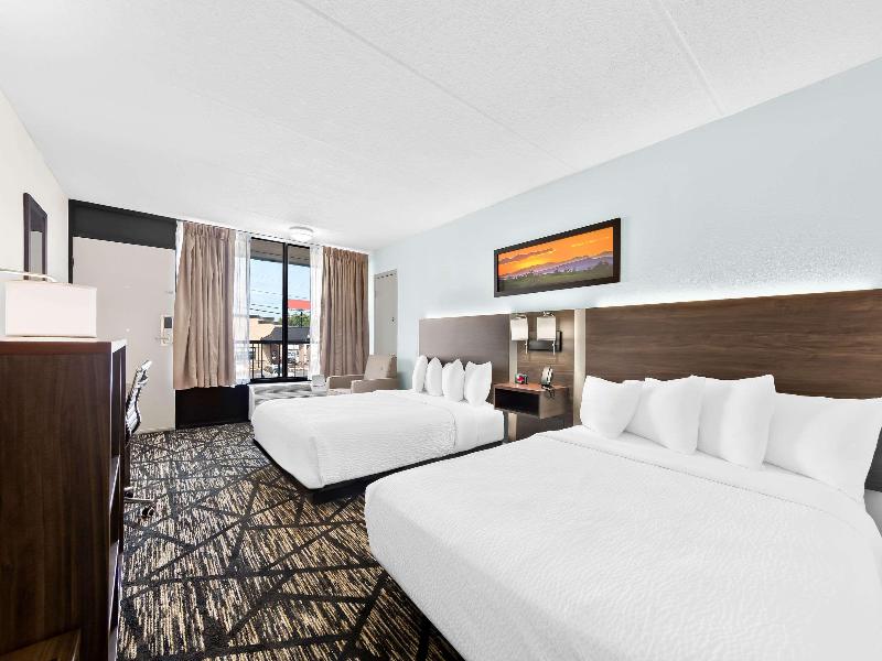 Descubre todo lo que la región de las Great Smoky Mountains tiene para ofrecerte en nuestro hotel Clarion Inn and Suites near the Leconte Center Pigeon Forge en Pigeon Forge, TN. Nuestra ubicación privilegiada junto a la US-441 te sitúa a pocos minutos de atracciones populares como Dollywood, el LeConte Center y el Pigeon Forge Factory Outlet Mall. Con impresionantes vistas y comodidades como wifi gratis, desayuno caliente y un centro de negocios, tenemos todo lo que necesitas para una estancia memorable. Los amantes de las actividades al aire libre encontrarán todas las rutas de senderismo que deseen, o podrán disfrutar de aventuras en tirolesa en varios lugares cercanos. Los aficionados a la historia y quienes viajan por negocios estarán cerca de museos, centros de convenciones y campos de golf. Después de un día productivo, relájate en nuestras limpias y acogedoras habitaciones o suites. Además, con cada estancia, puedes ganar puntos para obtener noches gratis, tarjetas de regalo y mucho más con nuestro programa Choice Privileges Rewards.