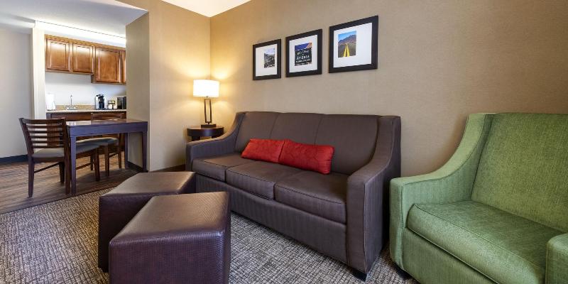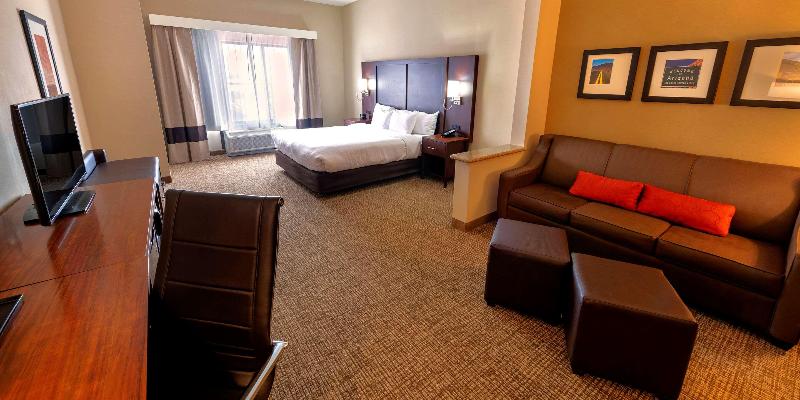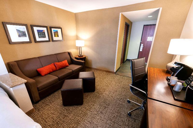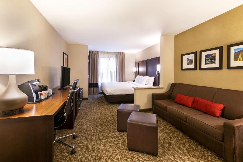 Te damos la bienvenida al hotel Comfort Suites, un espacio libre de humo en Goodyear, AZ, cerca del Goodyear Ballpark. Nuestra ubicación junto a la Interestatal 10 nos sitúa cerca del Westgate City Center, Wildlife World Zoo, Talking Stick Resort Arena y mucho más. Organiza tu evento empresarial o social en una de nuestras cinco salas de reuniones con capacidad para hasta 187 personas. Entre las comodidades adicionales, se incluyen un centro de negocios con servicios de fotocopias y fax, además de un ordenador con internet, desayuno gratuito, wifi gratis, piscina climatizada al aire libre y mucho más. Las habitaciones están equipadas con nevera, microondas, televisor de pantalla plana, cafetera y zonas independientes para trabajar, relajarse y dormir. Además, puedes ganar recompensas como noches gratis y tarjetas de regalo con nuestro programa Choice Privileges Rewards.