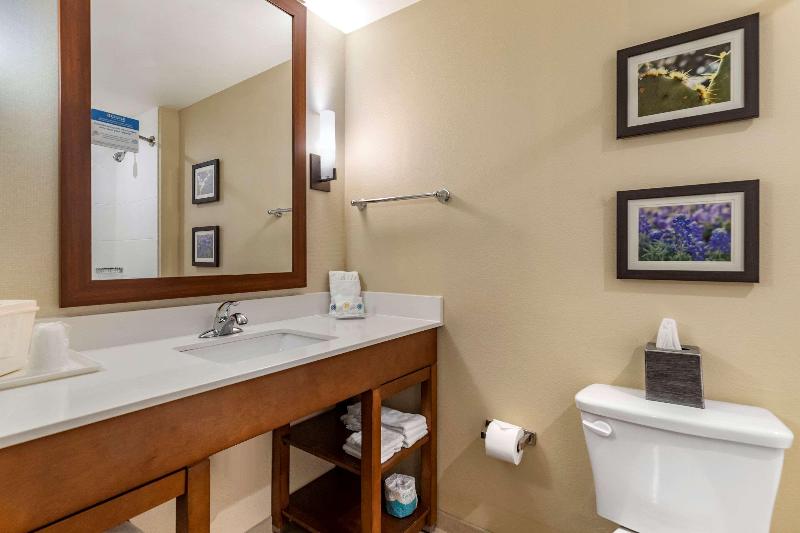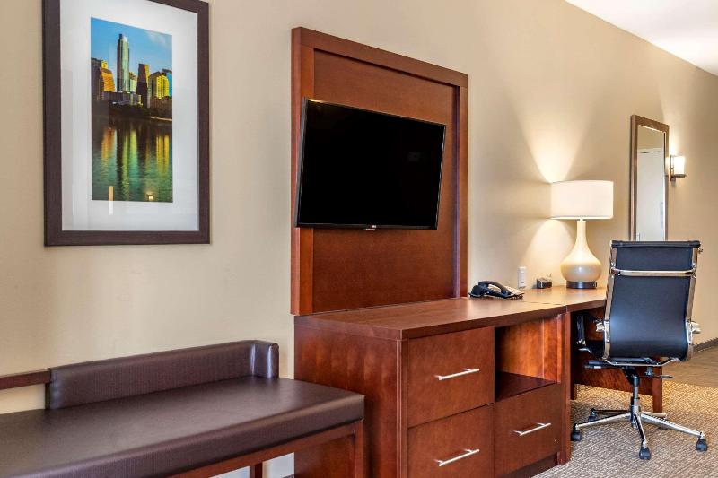 Consigue todo lo esencial para mantenerte en tu mejor nivel y rendir al máximo en el hotel Comfort Suites, libre de humo, en Kyle, Texas, cerca de varios restaurantes, Target, el Kyle City Center y el Seton Medical Center. Nos encontramos a unos 20 minutos de Austin. Las comodidades incluyen desayuno caliente gratuito, wifi gratis, gimnasio, centro de negocios, piscina al aire libre y servicio de lavandería. Tu habitación cuenta con un 25% más de espacio que la habitación de hotel promedio, además de comodidades como microondas, refrigerador, cafetera con té y café en la habitación, televisor de pantalla plana, secador de pelo, sala de estar, sofá y dispositivos para cargar tus aparatos electrónicos. Gana recompensas con cada estancia con nuestro programa Choice Privileges Rewards.