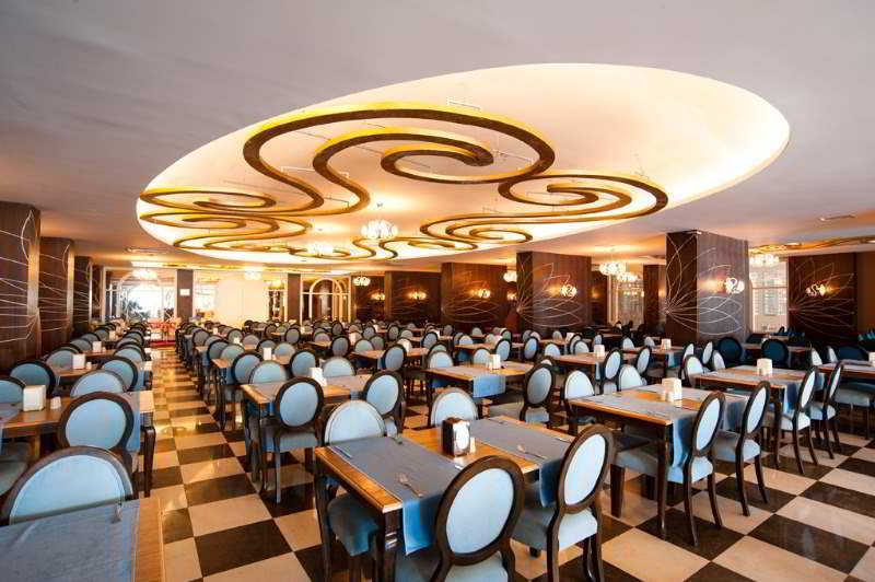 Este hotel, situado en el corazón de Karaburun, se encuentra junto a una playa maravillosa, rodeada de bares, restaurantes y numerosas tiendas y comercios. La zona turística y un bosque precioso están situados a un kilómetro y la ciudad de Manavgat está a 28 kilómetros. Podrá llegar al animado centro de Alanya muy cómodamente con el servicio de transporte público, situado a 20 minutos (a unos 35 kilómetros). El aeropuerto de Antalya está a una distancia de 95 kilómetros.||Este noble hotel climatizado, inaugurado en el año 2003 y restaurado por completo en el año 2005, cuenta con un total de 331 habitaciones, 21 de ellas suites junior, repartidas en 5 plantas. Está situado en una avenida y le ofrece un magnífico jardín, un amplio hall de entrada con varios ascensores, servicio de cambio de divisa y una recepción, abierta las 24 horas del día. Parte de las instalaciones son también una cafetería, un pequeño supermercado, varias tiendas, un salón de peluquería, un bar muy acogedor, una discoteca y un restaurante climatizado, en el que se ofrecen especialidades turcas (con sillas altas para los niños). En el hotel puede encontrar una sala de televisión, una sala de juegos, un comedor y una sala para el desayuno. Aquellos que viajen por motivos de negocios pueden utilizar varias salas de conferencias y, abonando cargo adicional, la conexión inalámbrica a Internet. Como prestaciones adicionales se le ofrece el servicio de lavandería y de atención médica. Para los más pequeños hay un club infantil, así como un parque donde podrán jugar. Podrá aparcar su vehículo en el aparcamiento del hotel.||Las lujosas habitaciones disponen de un espacioso baño con secador de pelo. También están equipadas con teléfono de línea directa, televisión vía satélite o por cable, una pequeña nevera y caja fuerte de alquiler. En todas podrá encontrar cama doble, suelo enmoquetado, aire acondicionado regulable de forma individual, calefacción y balcón o terraza.