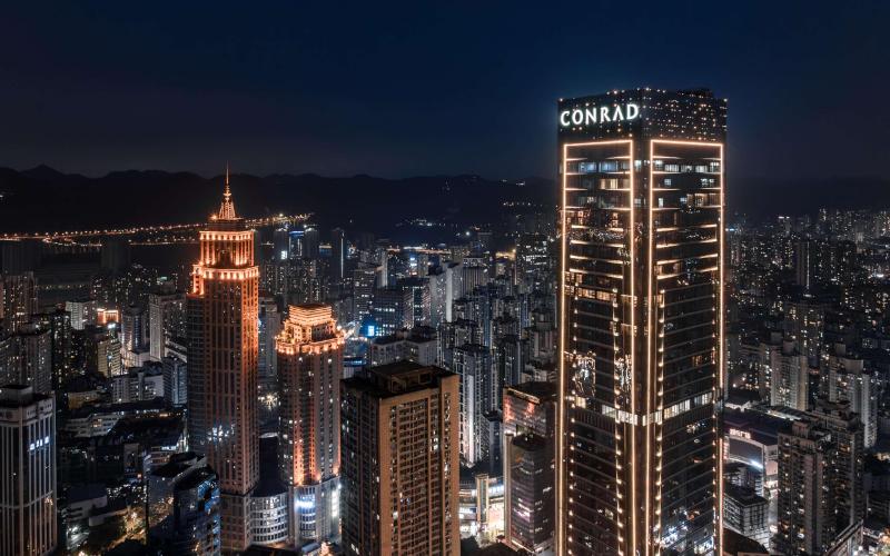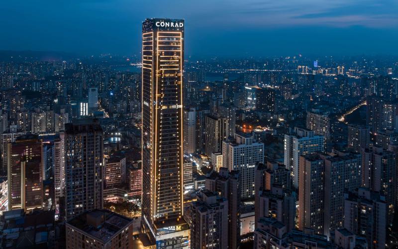 Diseñado por Hong Kong Cheng Chung Design, Conrad Chongqing captura ingeniosamente la esencia del terreno montañoso de Chongqing, fusionando paisajes naturales con la cultura arquitectónica histórica para presentar un ambiente oriental único. Adoptando un concepto de diseño surrealista basado en los elementos de montañas, movimiento, pabellones y secuencia, el hotel gira en torno al tema de La Ciudad Flotante Oriental. Integrando la naturaleza urbana y la cultura arquitectónica de la era republicana, redefine el lujo a través de una narrativa tridimensional. El diseño de cada planta se corresponde inteligentemente con el paisaje montañoso, creando una atmósfera oriental distintiva, única en la brumosa ciudad de las montañas. Los paisajes y la historia cultural de Chongqing se entrelazan en cada detalle del hotel, asemejándose a un espacio suspendido que atraviesa el tiempo y un panorama tridimensional de una ciudad montañosa. El hotel presenta un estilo de vida que combina la elegancia con la sofisticación más vanguardista para sus huéspedes.