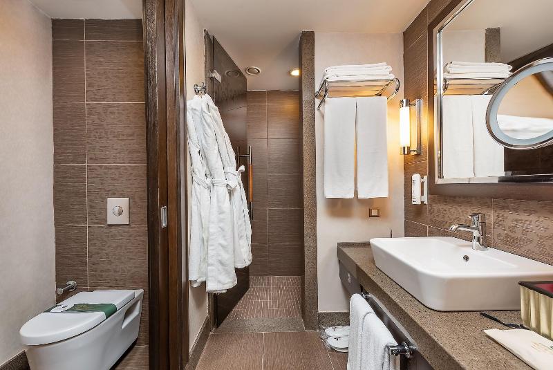 Todas las habitaciones disponen de dormitorio, cuarto de baño privado con ducha/bañera y secador de pelo, teléfono de línea directa, TV interactiva vía satélite con pantalla LCD, con un canal de música y TV de pago, además de conexión a Internet. También están equipadas con minibar, aire acondicionado central, calefacción central y caja fuerte. Todos los alojamientos cuentan con balcón y hay habitaciones disponibles para no fumadores, además de 6 habitaciones para personas de movilidad reducida.