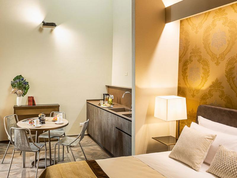 Inaugurado en 2019 tras una extensa renovación, Corte Guelfa es un remanso de tranquilidad ubicado en un edificio apacible a pocos pasos del vibrante Mercado Central de Florencia. Este oasis de paz ofrece el escape perfecto del bullicio de la ciudad, pero está convenientemente situado cerca de lugares emblemáticos como las Capillas de los Medici y el Duomo. El nombre del hotel, 'Corte Guelfa', hace referencia al patio al aire libre rodeado de edificios, una característica única de su diseño. Con la estación de tren de Santa Maria Novella a solo 10 minutos a pie, Corte Guelfa es ideal tanto para viajeros de negocios como de placer. Cada habitación cuenta con entrada privada para tu máxima privacidad y flexibilidad. Se mantienen estrictos protocolos de limpieza en todo el hotel y hay disponibles opciones de registro y pago sin contacto.