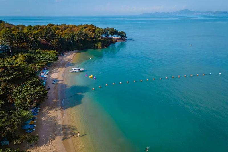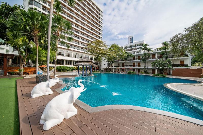 El hotel está ubicado en un tranquilo cabo a solo cinco minutos al sur de Pattaya, y disfruta de impresionantes vistas al Golfo de Siam. El centro de la ciudad, con sus numerosas tiendas, bares y restaurantes, se encuentra a 5 minutos en coche. Está a unos 60 km del aeropuerto de Utapao, mientras que el aeropuerto internacional se encuentra a unos 150 km del hotel. Renovado en 2005, este hotel de playa con aire acondicionado está rodeado de hermosos jardines con impresionantes vistas al mar y comprende un total de 304 habitaciones, tres de las cuales son suites. El vestíbulo alberga una recepción abierta las 24 horas, una caja fuerte y una oficina de cambio de divisas. Otras instalaciones incluyen una cafetería, varias tiendas, como una cafetería y una tienda de recuerdos, y una peluquería. Además, hay un restaurante a la carta, conexión a Internet pública y un punto de acceso W-LAN. También es posible aprovechar los servicios de habitaciones y lavandería, y los huéspedes que lleguen en coche pueden utilizar el aparcamiento del hotel. Las habitaciones y suites cuentan con baño privado con bañera, ducha y secador de pelo. El equipamiento estándar incluye teléfono de línea directa, conexión a Internet y TV por cable/satélite. Un minibar/nevera, una cama extragrande y aire acondicionado regulable individualmente también se incluyen como estándar en las unidades de alojamiento. Facilidades para preparar té y café, moqueta y caja fuerte de alquiler completan el mobiliario disponible. En los jardines hay dos piscinas con piscinas infantiles, un bar junto a la piscina, así como una terraza con tumbonas y sombrillas listas para usar. Además, se ofrecen varios tratamientos de masaje. Los entusiastas del deporte pueden probar una variedad de deportes acuáticos, como esquí acuático, windsurf y parasailing. Los huéspedes pueden elegir su desayuno de un bufé. El almuerzo y la cena se pueden tomar a la carta o como menú fijo.