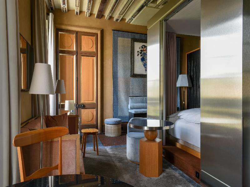 Las piedras de los antiguos reyes de Francia tienen incontables historias que contar. Hoy, te invitan a escribir la tuya. En la legendaria Place des Vosges, EVOK te da la bienvenida a la residencia familiar de un noble linaje de eruditos, coleccionistas de arte y momentos preciosos. Una vista privilegiada de la Square Louis XIII, rodeada por los pabellones de ladrillo rosa coronados con tejados de pizarra. Las majestuosas arcadas, orgullosamente alineadas, reciben a los recién llegados. Los apartamentos de esta residencia del siglo XVII ofrecen hoy doce apartamentos privados distribuidos en cuatro plantas y un salón de té, reformados por los arquitectos Lecoadic & Scotto. Con pleno respeto por las formas y volúmenes de la época histórica, preservando la auténtica nobleza y manteniendo viva la hospitalidad como un espíritu familiar. Parisinos y visitantes experimentan la vida del barrio como si estuvieran en casa, disfrutando de una intimidad imperturbable, garantizada por el servicio de un mayordomo excelentemente discreto. Bajo las acogedoras bóvedas del vestíbulo, este guardián del lugar te entrega la llave de tu apartamento. En lo alto de la majestuosa escalera, las puertas originales se abren a la grandeza renacentista de techos de madera pintados de cinco metros de altura. Con ventanas que dan a la arbolada plaza, este singular salón te envuelve con la luz de un misterio azul y rosa pastel. Una mezcla de esplendor del siglo XVII y diseño de los años 70: terracota antigua, tapices azules, una cama con dosel reinventada, lámparas de candelabro, libros y estatuas se encuentran con mesas de acero inoxidable, una barra de bar de cristal y un lavabo de latón. Biombos lacados y paredes correderas orquestan los intersticios de este espacio de bienestar sobrio y elegante, realzado con oro. La paz de los sentidos continúa en la íntima serenidad del baño romano o a través de la cocina ligera que se ofrece en el salón de té y en su terraza.