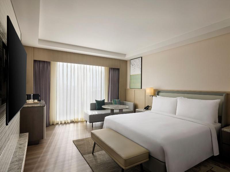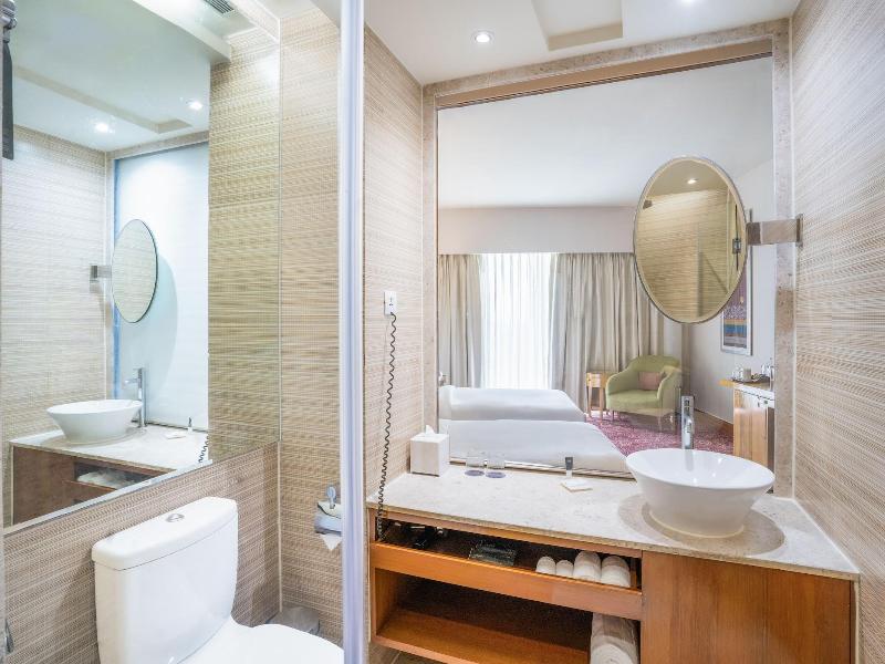 El Courtyard by Marriott Hyderabad goza de una ubicación céntrica en Hyderabad, a 2 minutos a pie del lago Hussain Sagar y a 4 minutos en coche del templo Birla Mandir. Este elegante hotel se encuentra a 7, 7 km del Museo Salar Jung y a 8, 4 km de la mezquita Mecca Masjid. . Date un capricho con una visita al spa, que ofrece masajes, tratamientos corporales y faciales. Seguro que apreciarás las instalaciones recreativas, que incluyen una piscina al aire libre, un baño de vapor y un gimnasio. Entre los servicios adicionales de este hotel se incluyen acceso inalámbrico a internet (de pago), servicios de conserjería y servicio de niñera (de pago). Desplazarse a las atracciones cercanas es muy fácil con el servicio de transporte de la zona (de pago) que opera en un radio de 20 kilómetros. . Ponte cómodo en una de las 112 habitaciones con minibar y televisor LCD. La programación por cable te ofrece entretenimiento, y el acceso a internet por cable e inalámbrico está disponible por un suplemento. Los baños privados con ducha disponen de cabezal de ducha tipo lluvia y artículos de tocador gratuitos. Las comodidades incluyen teléfono, caja fuerte y escritorio. . Disfruta de una comida en el Momo Cafe, un restaurante bufé con bar/salón, o quédate en tu habitación y aprovecha el servicio de habitaciones las 24 horas. Se sirve desayuno bufé de lunes a viernes de 7:00 a 10:30 y los fines de semana de 7:00 a 11:00 por un suplemento. . Entre los servicios destacados se incluyen acceso a internet por cable (de pago), un centro de negocios abierto las 24 horas y servicio de limusina/coche con chófer.