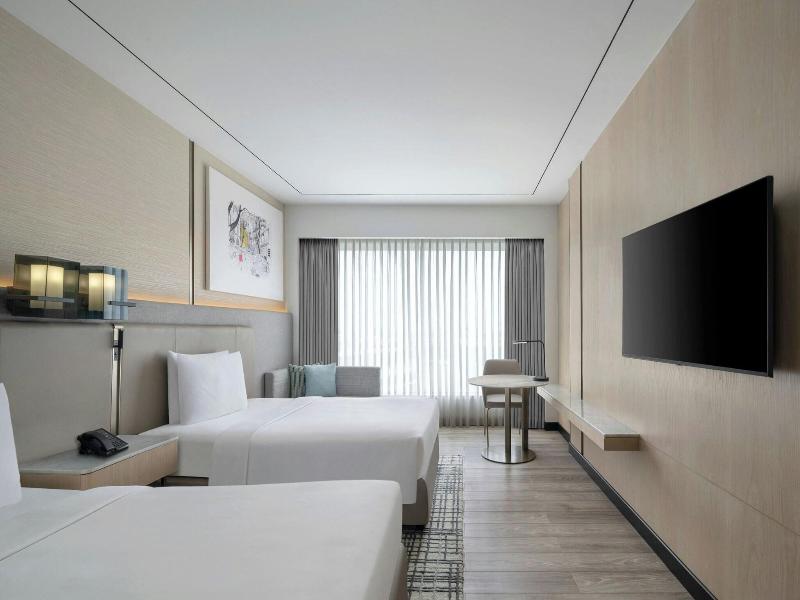 Alójate en el Courtyard by Marriott Mumbai International Airport, en el corazón de Bombay, a 3 minutos en coche de Santacruz Electronic Export Processing Zone y a 5 minutos de Bombay Convention & Exhibition Centre. Este hotel de lujo se encuentra a 6 km de Powai Lake y a 6, 3 km de Juhu Beach. Date un capricho con una visita al spa, que ofrece masajes, tratamientos corporales y faciales. Seguro que apreciarás las instalaciones recreativas, que incluyen una piscina al aire libre, un baño turco y un gimnasio abierto las 24 horas. Entre los servicios adicionales de este hotel se incluyen wifi gratis, servicios de conserjería y una tienda de regalos. Siéntete como en casa en una de las 334 habitaciones con estación de conexión para iPod y televisor LCD. Tu cama con pillow-top cuenta con ropa de cama de alta calidad. Disfruta de conexión a Internet wifi (de pago) y de programación por satélite. El baño privado está provisto de artículos de higiene personal gratuitos y secadores de pelo. Disfruta de la cocina internacional en MoMo Cafe, uno de los 3 restaurantes del hotel, o quédate en tu habitación y aprovecha el servicio de habitaciones las 24 horas. También tienes aperitivos disponibles en la cafetería. Termina el día con una bebida en el bar o lounge. Se sirve un desayuno bufé de lunes a viernes de 6:30 a 10:30 con cargo adicional. Tendrás a tu disposición un centro de negocios abierto las 24 horas, check-in exprés y check-out exprés.