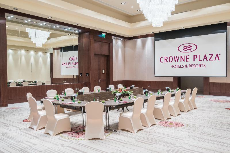 Un hotel frente a la playa para negocios y placer junto al puerto de Duqm. Todas las habitaciones del hotel Crowne Plaza® Duqm tienen vista al mar. Situado a medio camino entre Salalah y Muscat, en la hermosa costa de Omán, está a menos de 10 km del centro comercial e industrial de Duqm, en rápido desarrollo. Quienes viajan por negocios pueden organizar reuniones en cuatro salas de conferencias de última generación, una prestigiosa sala de juntas ejecutiva y dos magníficos salones de baile con el apoyo de un Director de Reuniones Crowne. Para relajarte, únete a tus colegas para jugar al tenis en el excelente gimnasio o para una noche de karaoke en The Frontier Restaurant and Sports Pub. El wifi y el aparcamiento son gratuitos para los huéspedes del hotel. Las parejas y las familias disfrutan de unas vacaciones maravillosas en Duqm, jugando al voleibol de playa, nadando en la piscina infinita y dando románticos paseos por la arena. Aislado pero sociable, el hotel es una base ideal para explorar las antiguas cuevas y wadis de la wilaya circundante. Esto puede abrirte el apetito para disfrutar de sabrosos platos internacionales en el restaurante Souq, platos locales de mariscos en el restaurante Al Safi Seafood y divertidas noches de barbacoa junto a la piscina. Los colores cálidos y los diseños de inspiración omaní añaden un toque acogedor a las 213 habitaciones y suites, con cada ventana y balcón con vistas al mar Arábigo. A medida que el puerto y dique seco de Al Duqm se convierte en un importante destino para el comercio y el turismo en Omán, el hotel Crowne Plaza Duqm ofrece servicios de negocios de primera clase con todos los atractivos de un resort de playa.
